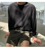 ホワイト長袖Tシャツメンズ2022新バージョントレンド無地コットンルーズ香港スタイルボトミングシャツ薄切片 ロング ソリッドカラー BLUU92753247818