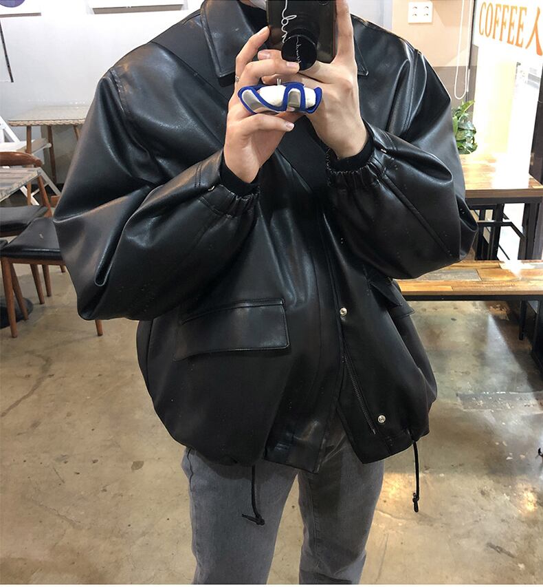 2022年新作レザーメンズトレンディブランドルーズバージョンのトレンドハンサムで用途の広い香港スタイルのレトロレザージャケットトップコート BLUU67753881869