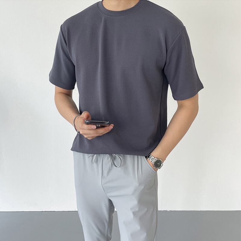 2022年夏の新作半袖メンズタイドブランドバージョントレンドルーズコットンハーフスリーブ香港スタイル無地Tシャツトップ サマー 夏物 ソリッドカラー BLUU89821644981