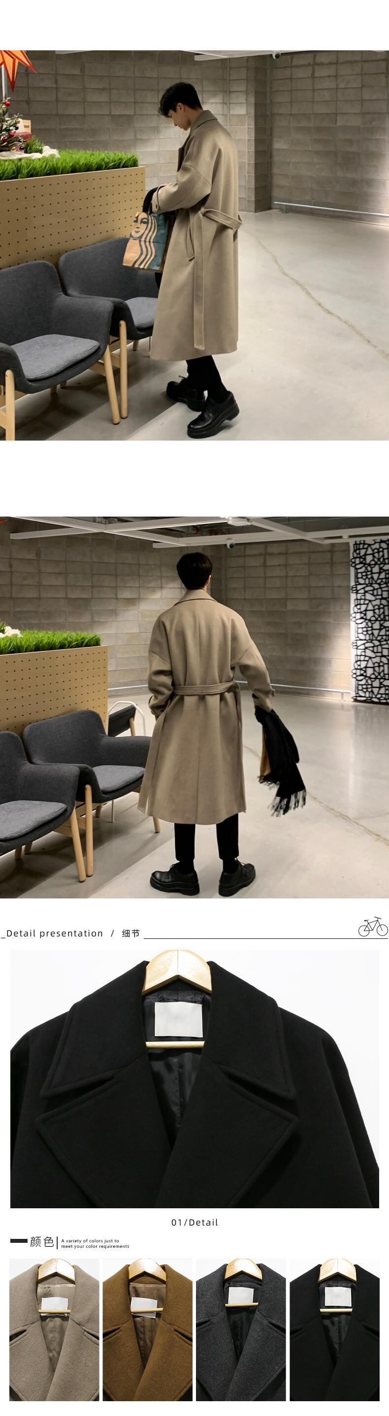 秋冬新作ウールコートメンズミドル丈厚みウインドブレーカーコートルーズトレンドオールマッチウールコート オータム 秋物 ウィンター 冬物 BLUU62323778638