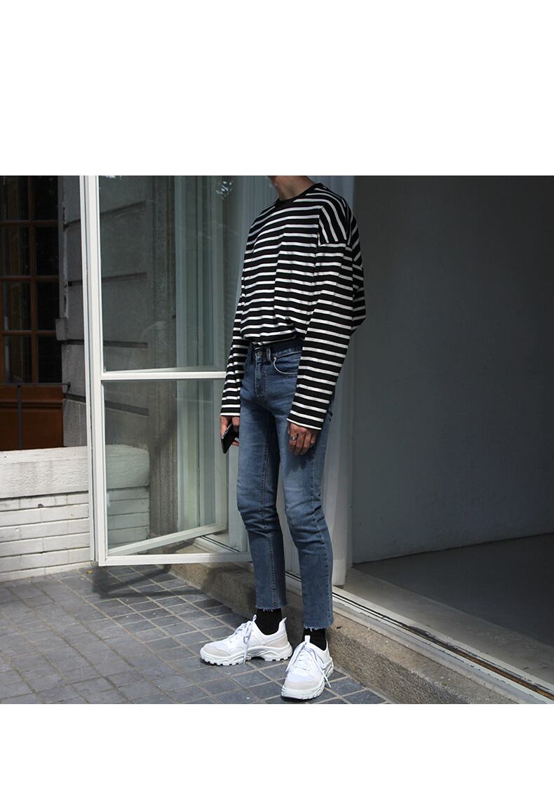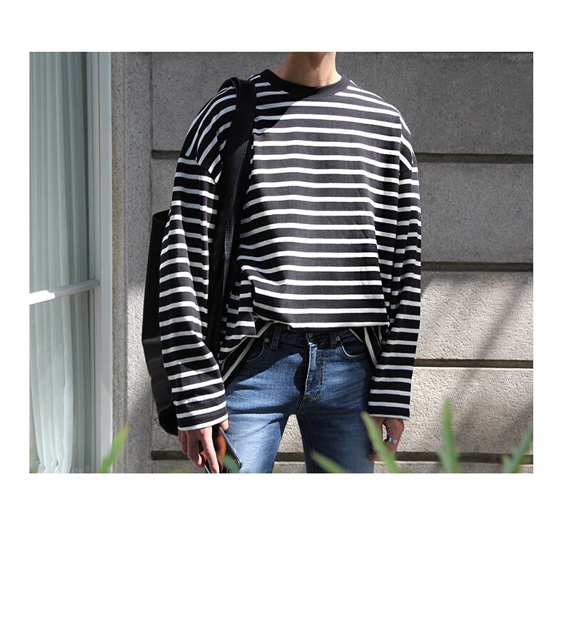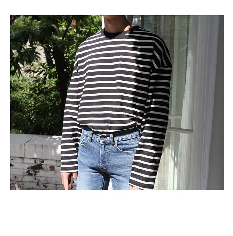 insストライプ長袖Tシャツメンズバージョンのタイドブランドカジュアルセーターオルチャントップメンズ春秋服ボトミングシャツ ロング スプリング 春物 オータム 秋物 BLUU4272142281