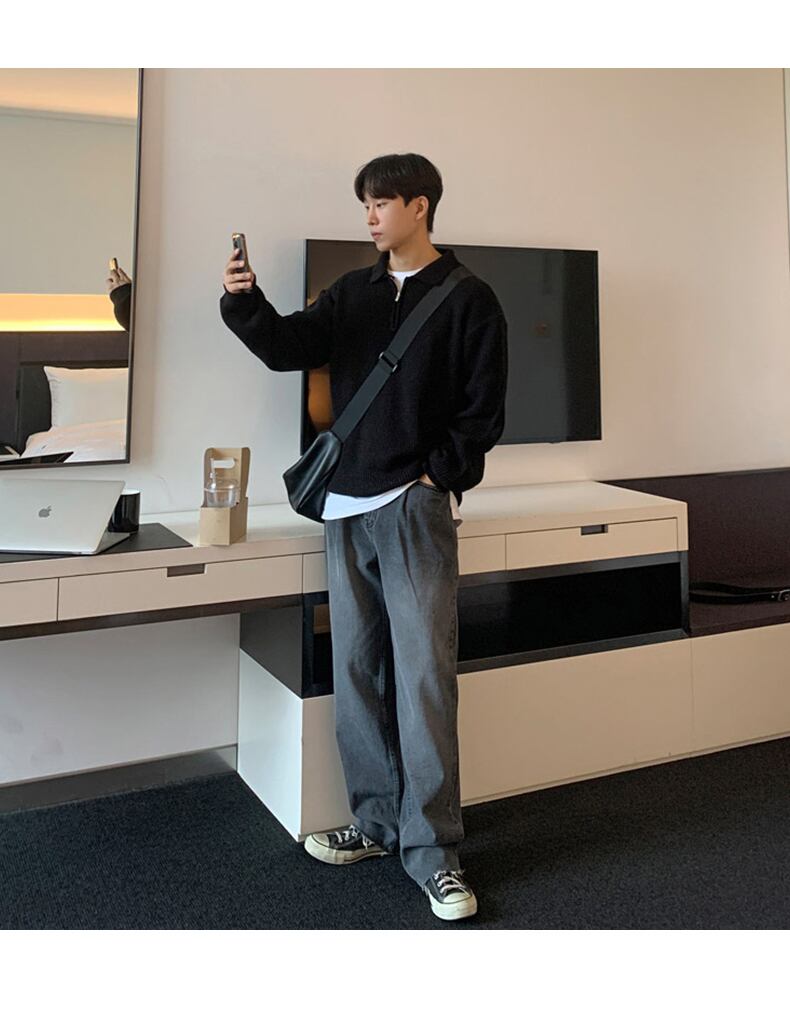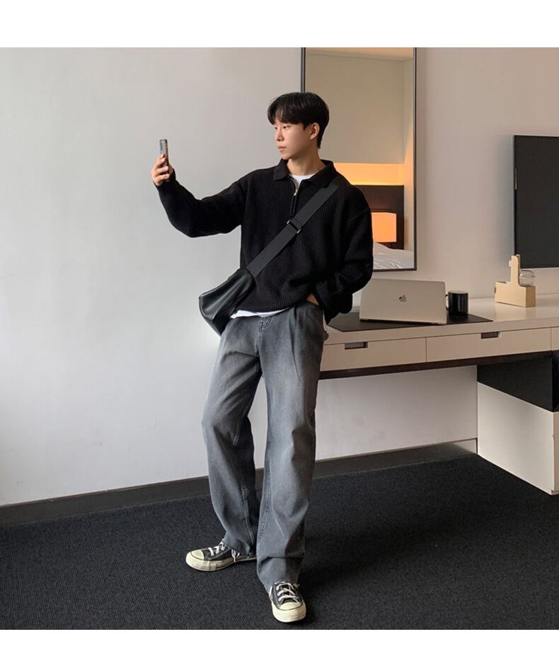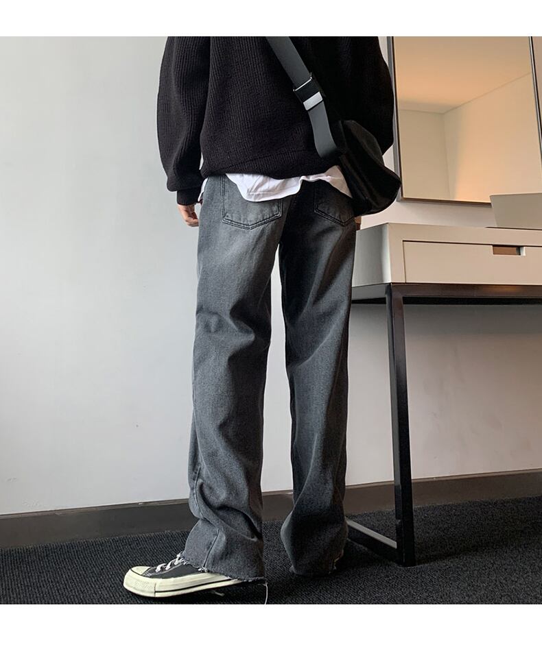 香港スタイルのレトロジーンズメンズハイストリートイントレンドルーズストレートワイドレッグモップカジュアルパンツタイドブランド BLUU53615312442