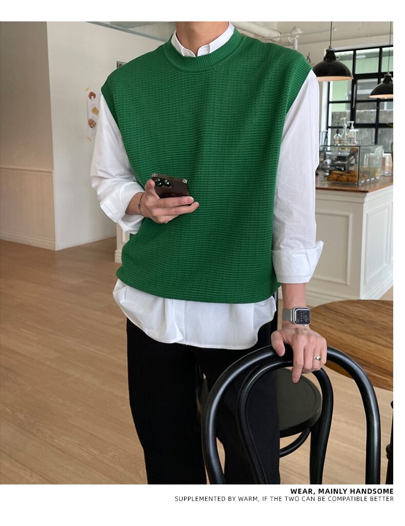 2022年春無地ニットセーターチョッキルーズオールマッチベストラウンドネックセーターベストメンズジャケットトレンドオールマッチ スプリング 春物 Oネック ソリッドカラー BLUU17405475981