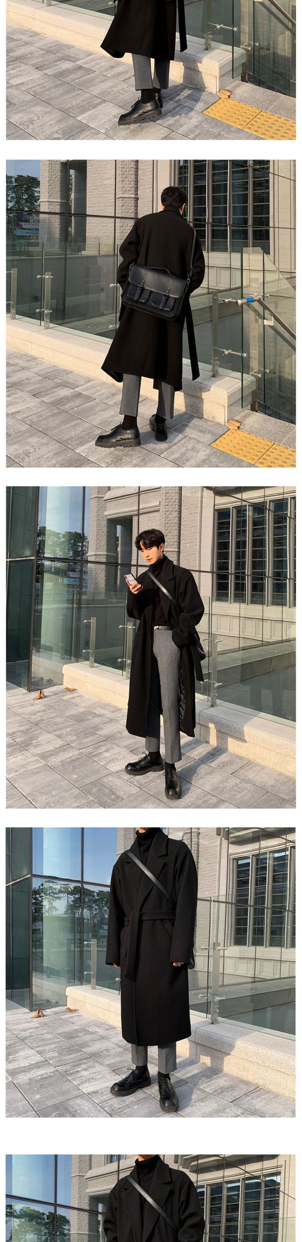 ウールコートメンズ冬厚手ミドル丈両面ウールイミテーションカシミアブリティッシュスタイルニジメンズウールコート ウィンター 冬物 BLUU97420576004