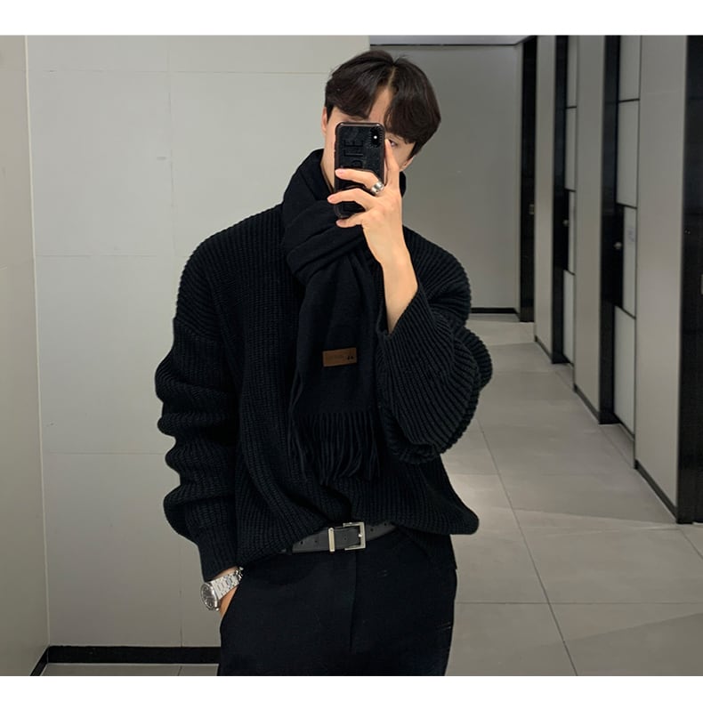 セーターメンズイン香港スタイル秋冬増粘バージョントレンドルーズ無地ラウンドネックボトミングニットセーターオールマッチ着用 オータム 秋物 ウィンター 冬物 Oネック ソリッドカラー BLUU17752617018
