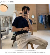 夏の新作香港スタイル半袖Tシャツメンズタイドブランドルーズバージョントレンド無地純綿シンプル半袖Tシャツ コットン サマー 夏物 ピュア ソリッドカラー BLUU26328224160