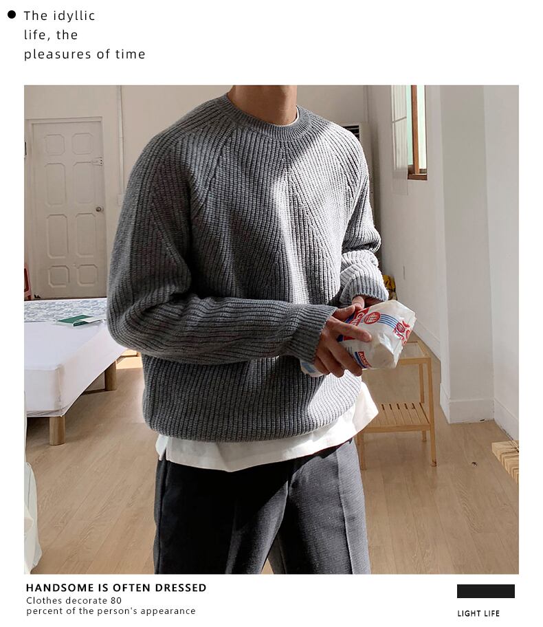 香港スタイルのラウンドネックセーターメンズルーズで怠惰なスタイルバージョントレンドカジュアルオールマッチ無地ニットセーターセータージャケット Oネック ソリッドカラー BLUU40018369473