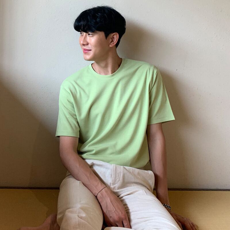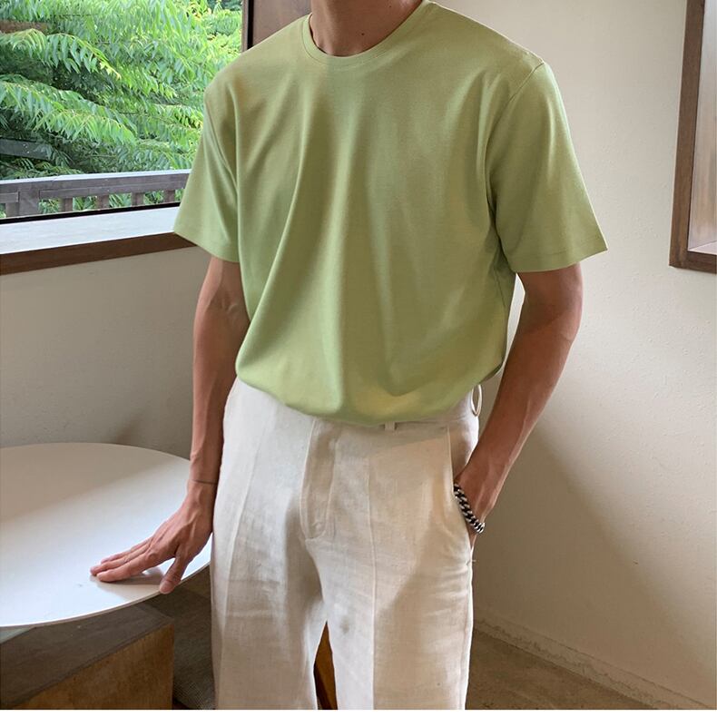 夏の新作香港スタイル無地半袖メンズタイドブランドトレンドバージョンルーズオールマッチコットンTシャツハーフスリーブトップス サマー 夏物 ソリッドカラー BLUU53410098344