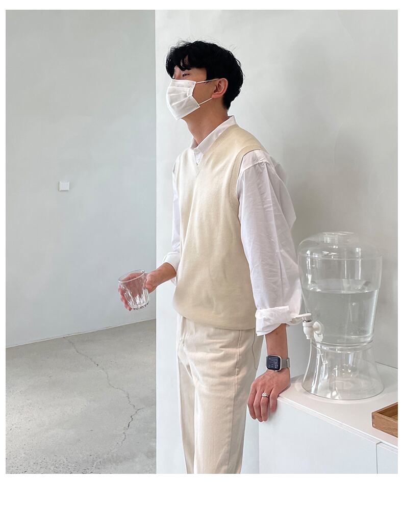 春のノースリーブベストセーターメンズVネックタイドルーズトレンドソリッドカラーニットセーターベストベストアウターウェア スプリング 春物 BLUU31605858447