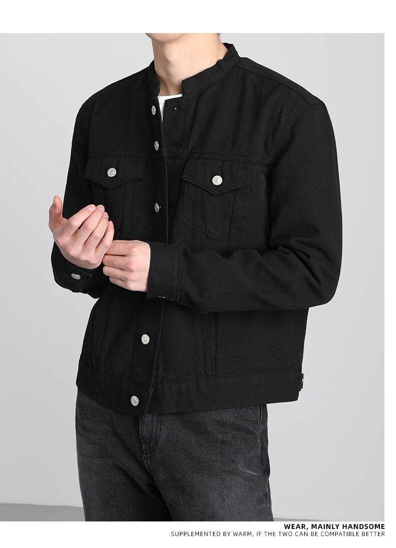 春黒ショートデニムジャケットメンズルーズタイドブランドトレンドイン香港スタイルカジュアルオールマッチジャケットトップ ブラック スプリング 春物 BLUU15880730453