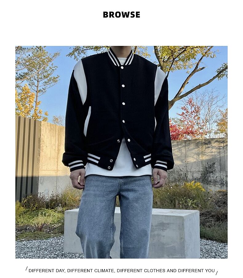 秋冬カラーブロックボンバージャケットメンズルーズバージョントレンドハンサムカラーレス野球ユニムトップスオールマッチ オータム 秋物 ウィンター 冬物 BLUU53087029333