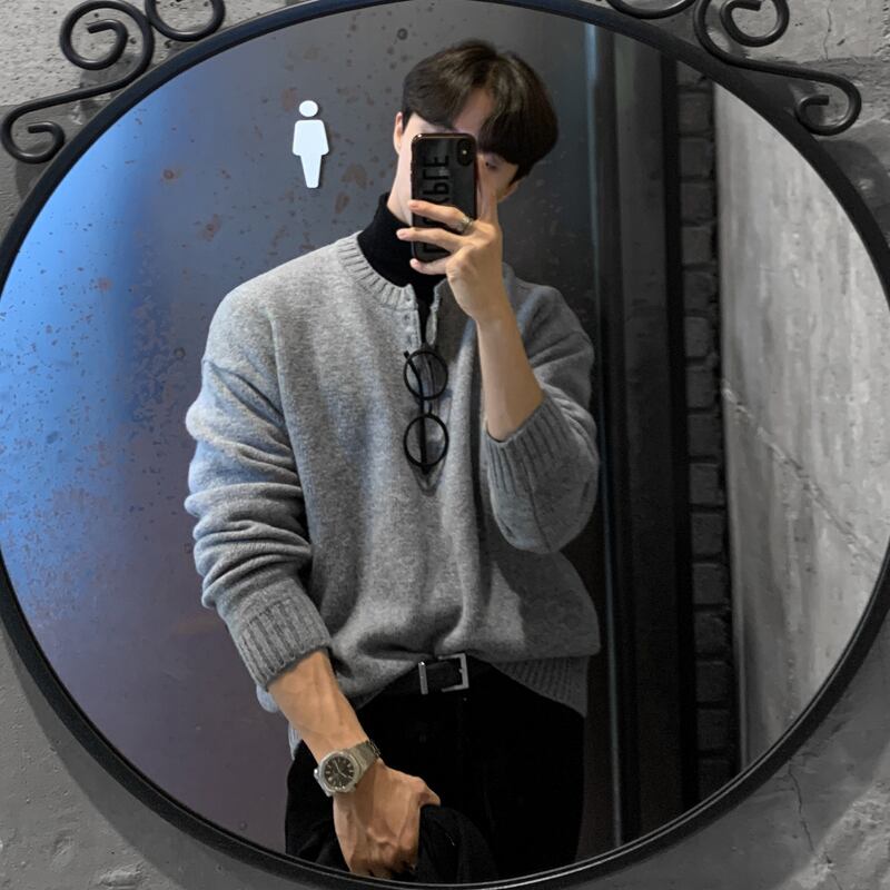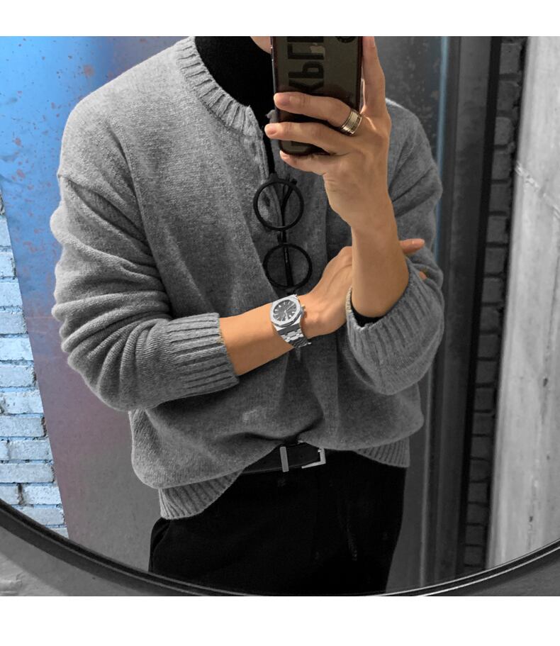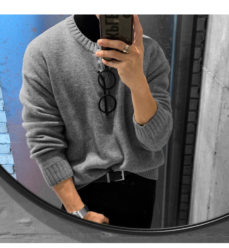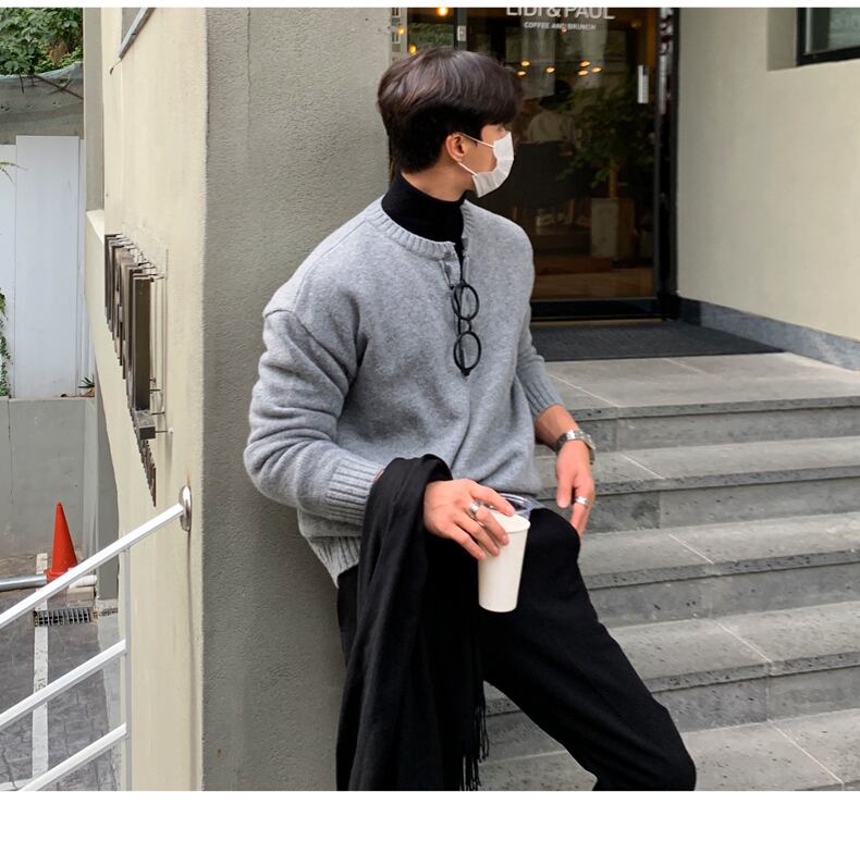 2022年の新しいセーターメンズ秋冬のトレンドパーソナリティルーズソリッドカラープルオーバーボトミングセータージャケットの厚みのあるバージョン オータム 秋物 ウィンター 冬物 BLUU37857812446