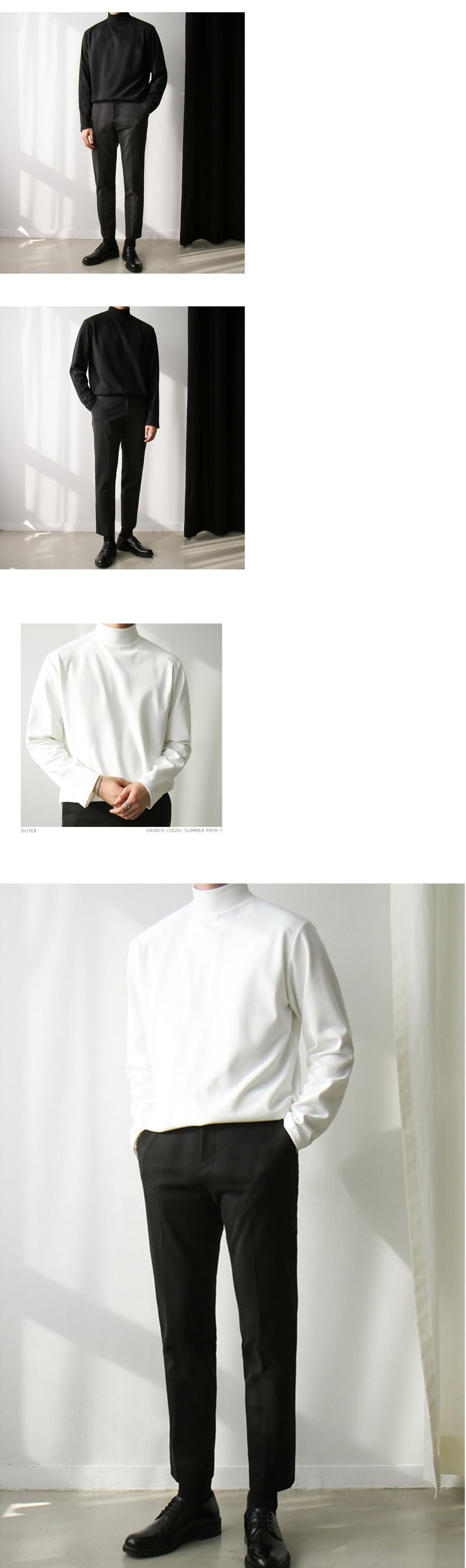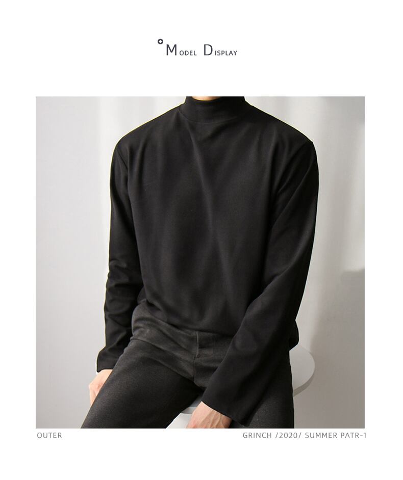 ハーフタートルネックTシャツメンズ長袖バージョントレンドルーズ無地セーター秋ボトミングシャツTシャツトップス ロング オータム 秋物 ソリッドカラー BLUU89835565600