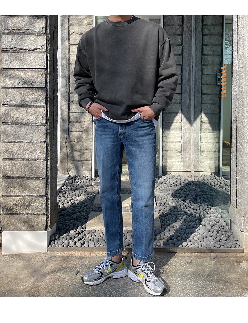 ラウンドネックセーターメンズタイドブランドのルーズでカジュアルな香港スタイルのレトロな無地の長袖ボトミングシャツのトップトレンドオールマッチのバージョン ロング Oネック ソリッドカラー BLUU86922549915