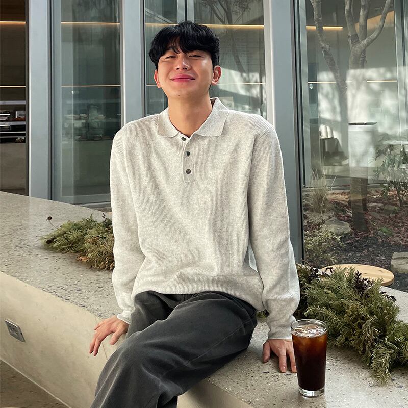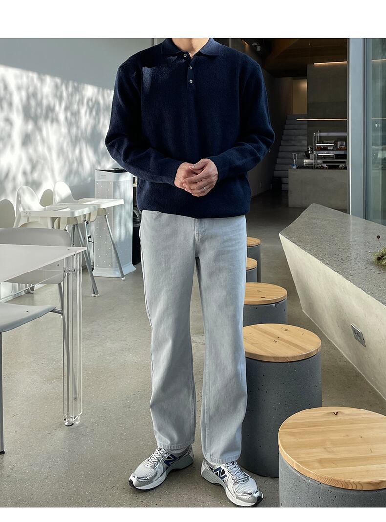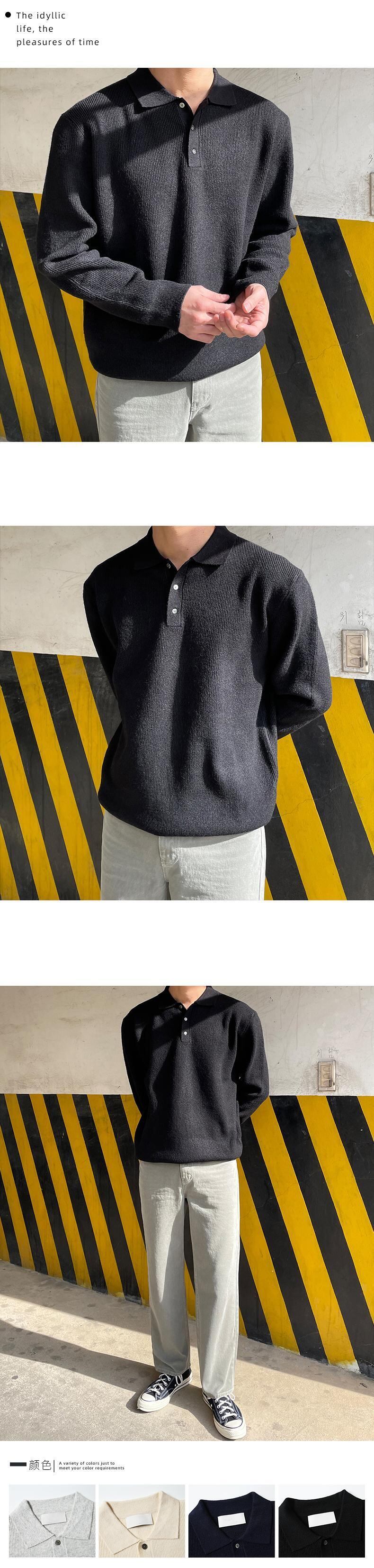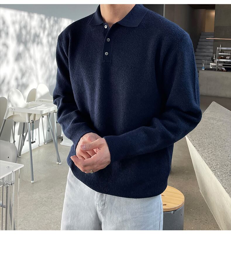 ラペルセーターメンズ長袖ルーズバージョントレンド香港スタイルプルオーバー無地ニットボトミングシャツカジュアルトップスオールマッチ ロング ソリッドカラー BLUU32378760644