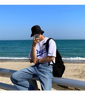 2022年夏の新原宿香港スタイルメンズ半袖Tシャツコットンルーズタイドブランドトレンドパーソナリティシャツインズタイド かわいい サマー 夏物 BLUU46239893095