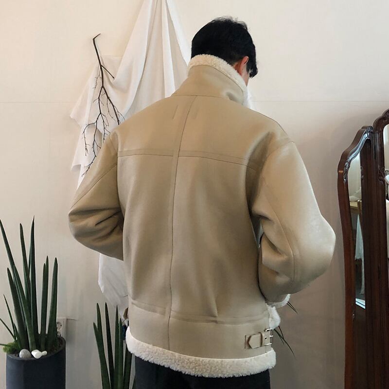 トレンドイミテーションラムベルベットファーオールインワンオートバイ服レザージャケットコート厚手コットン服の冬の新しい革メンズバージョン ウィンター 冬物 BLUU40566588672