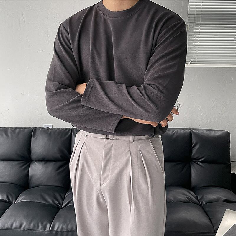 2022年春新作無地コットン長袖TシャツメンズルーズラウンドネックインナーボトミングシャツTシャツトップス ロング スプリング 春物 Oネック ソリッドカラー BLUU27517309530