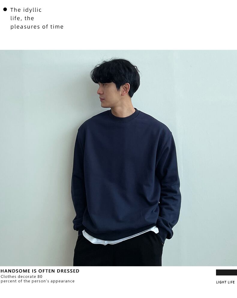 秋の新作長袖ラウンドネックプルオーバーセーターメンズタイドブランドinsルーズバージョントレンドオールマッチTシャツトップコート ロング オータム 秋物 Oネック BLUU99590256612