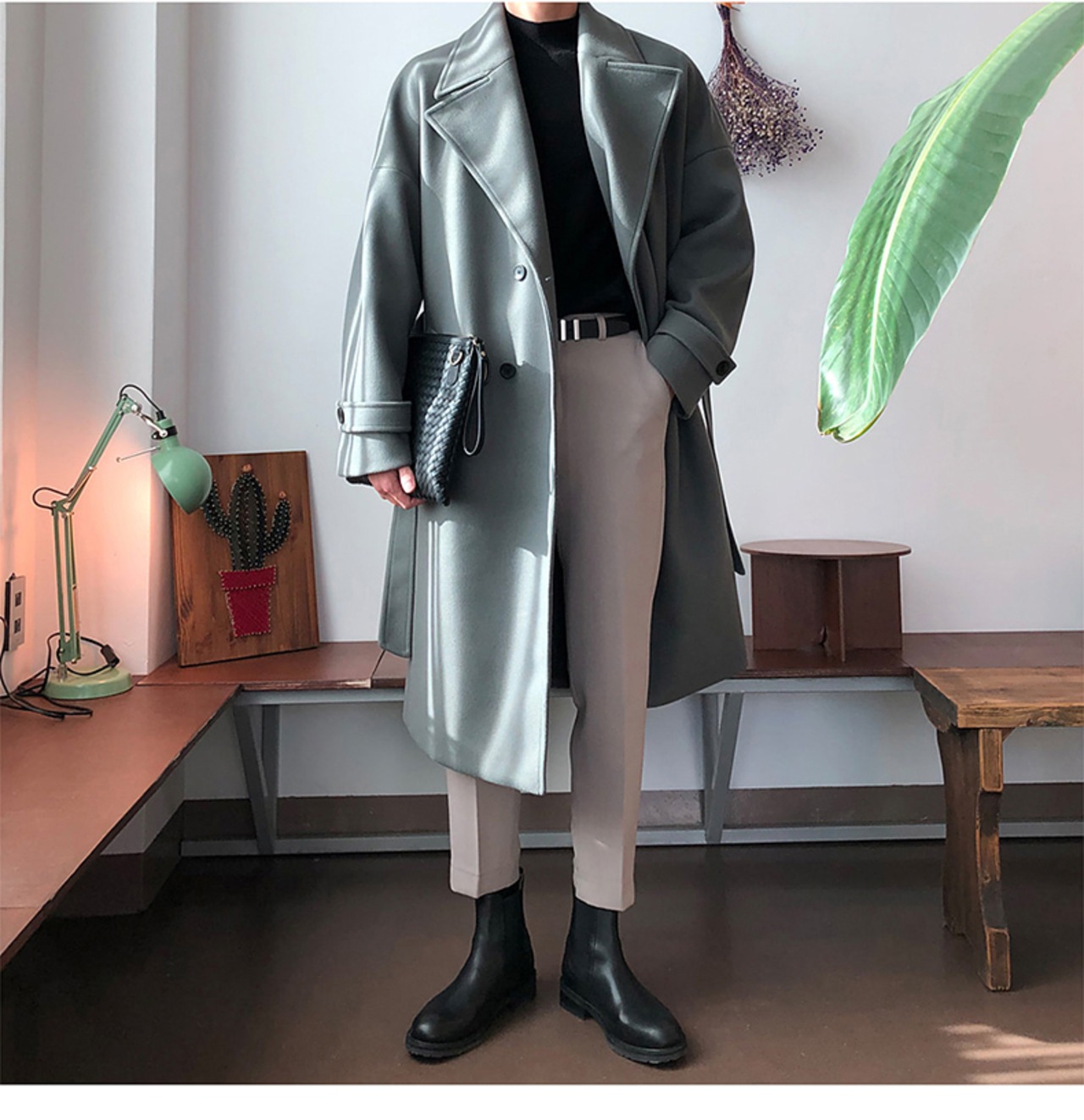 秋冬新作ウールコートジャケットメンズバージョンルーズミドル丈膝上ノン両面カシミアウールトレンチコート オータム 秋物 ウィンター 冬物 BLUU1607379891
