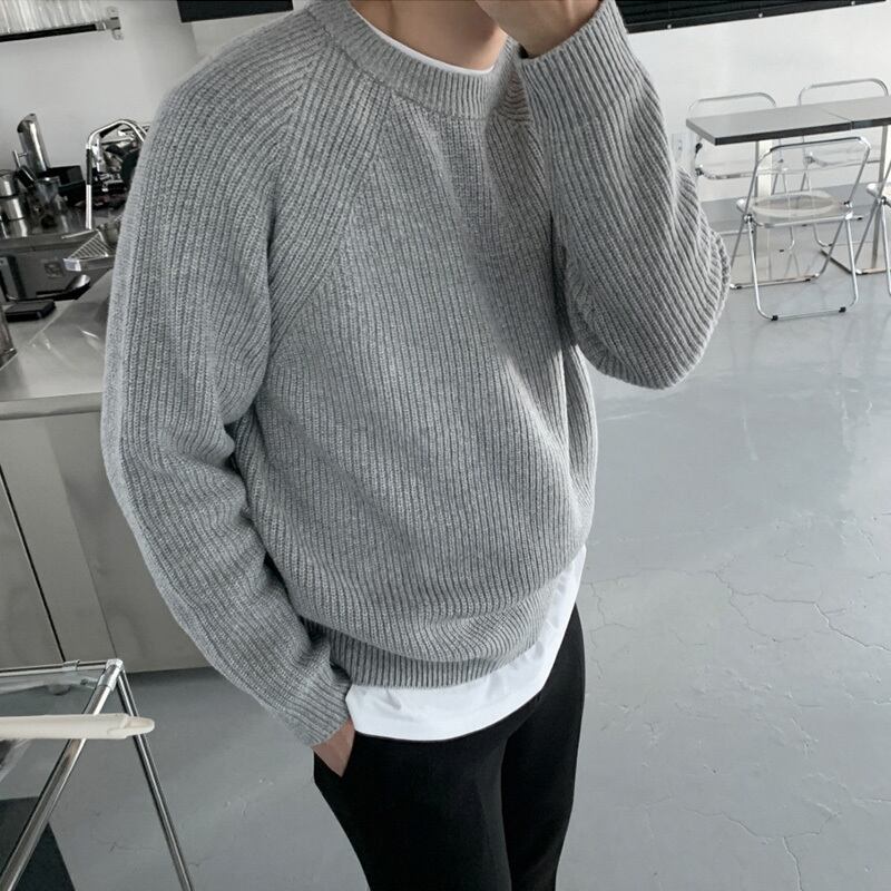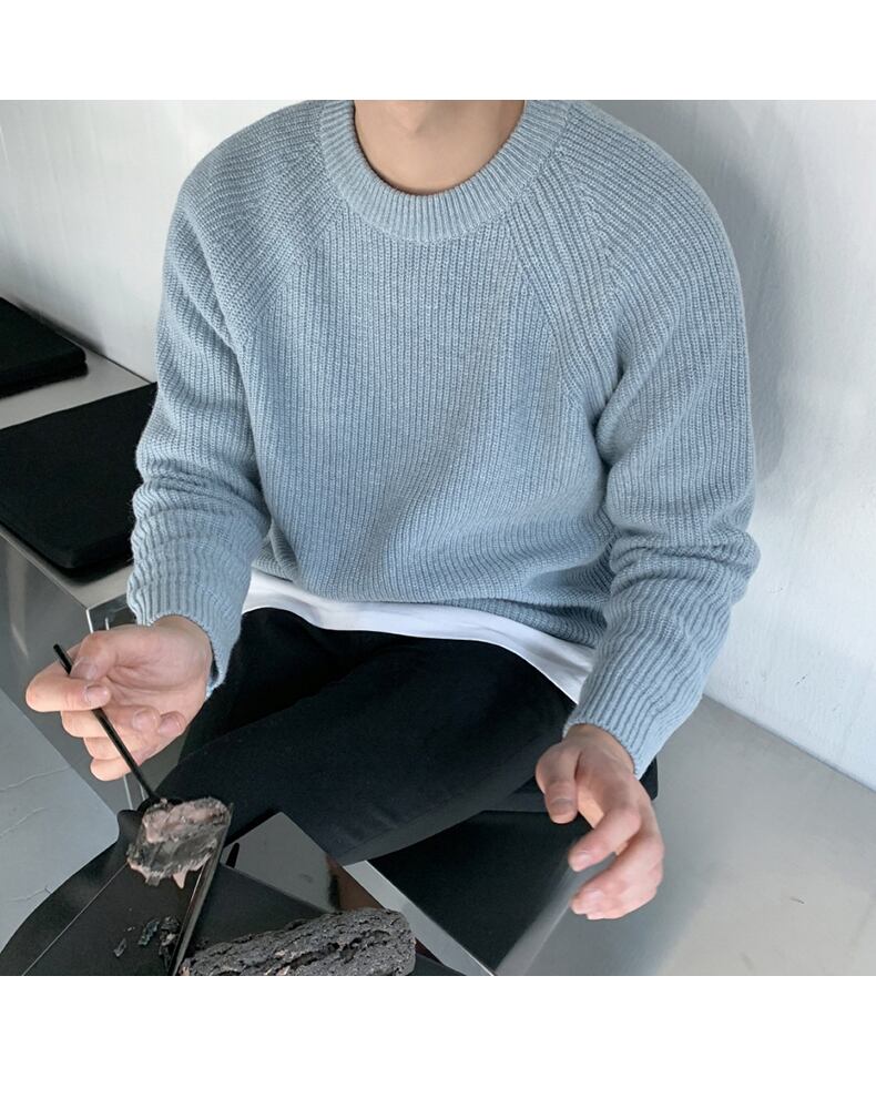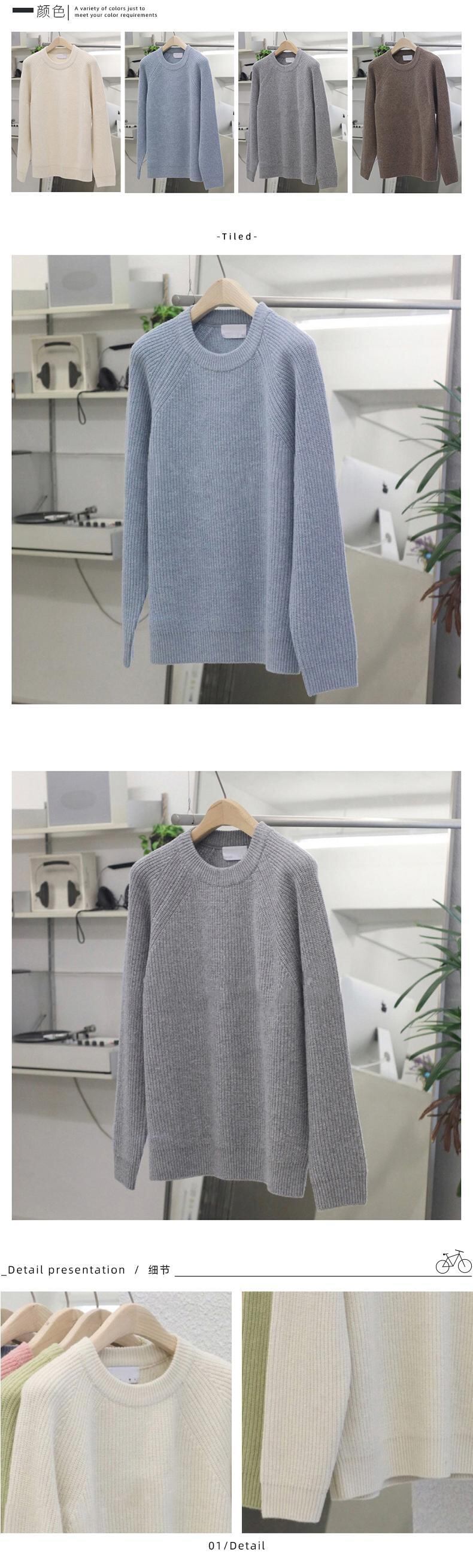 2022プルオーバーラウンドネックセーターメンズルーズバージョントレンドソリッドカラーボトムニットセータータイドスレッドジャケット Oネック BLUU23553857242