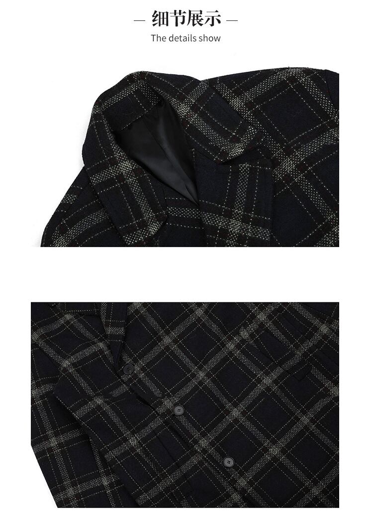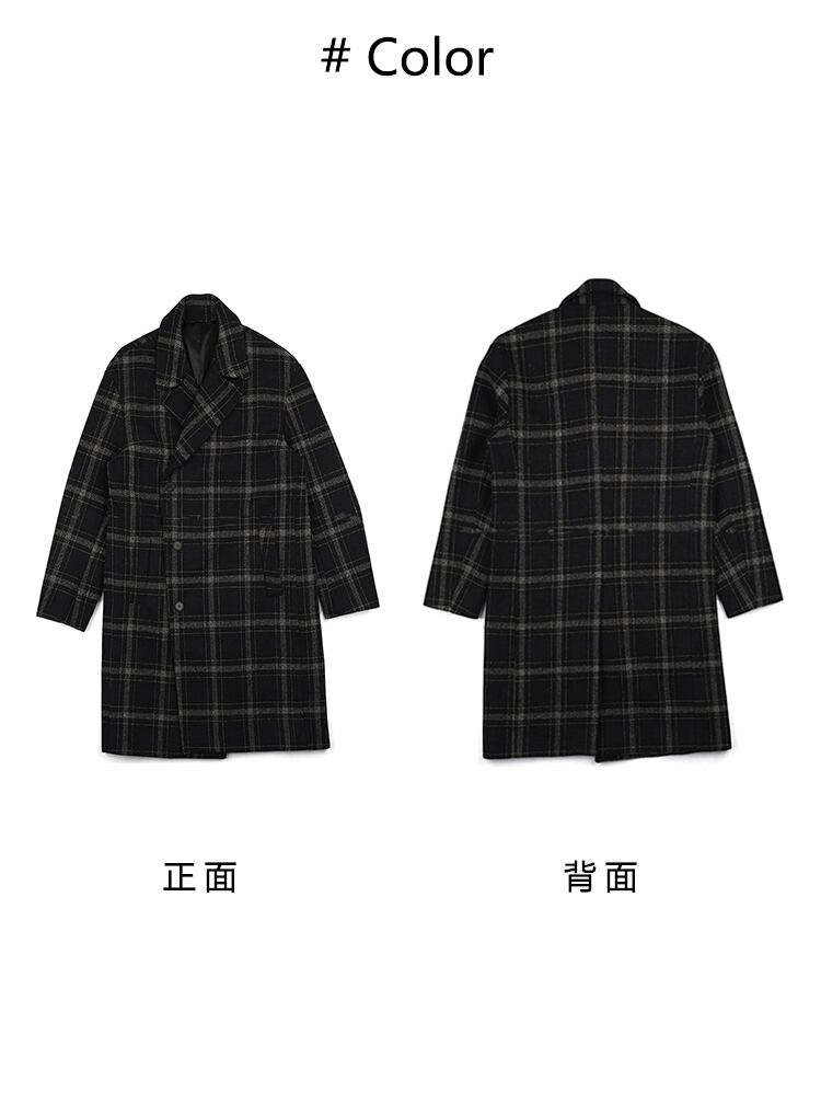2022年新作チェック柄メンズミドル丈冬厚めバージョンルーズノン両面カシミアウールコートタイド ウィンター 冬物 BLUU94374120671