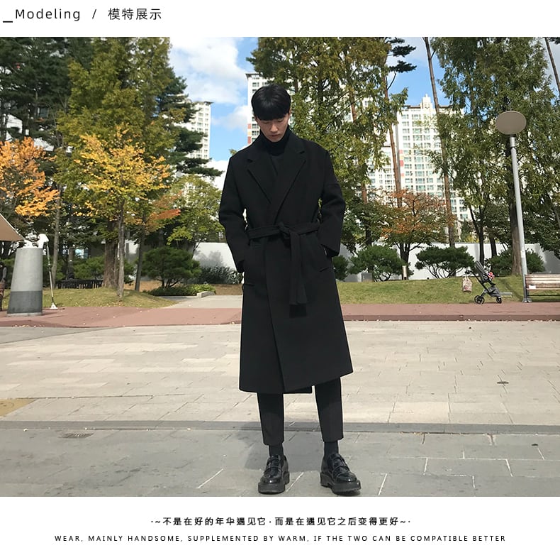 ウールコートメンズミドル丈オーバーザニーウインドブレーカーウィンターシックニングバージョンルーズノンカシミア両面ウールコート 冬物 BLUU47587377359