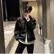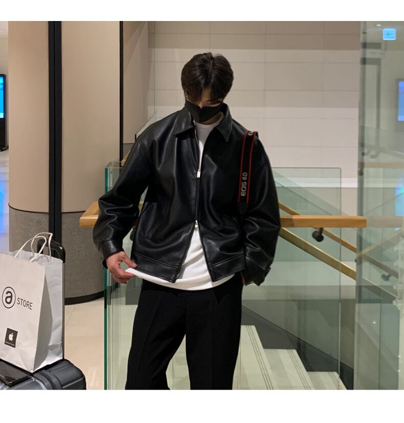 秋の新しいオートバイの革のジャケットメンズラペルタイドブランドインルーズショートレザージャケットトレンディなハンサムで用途の広い オータム 秋物 BLUU18069681605