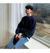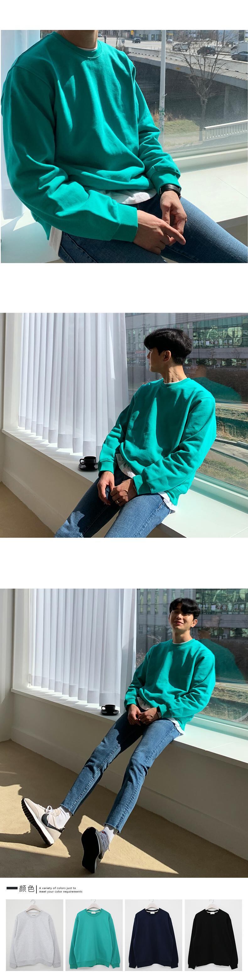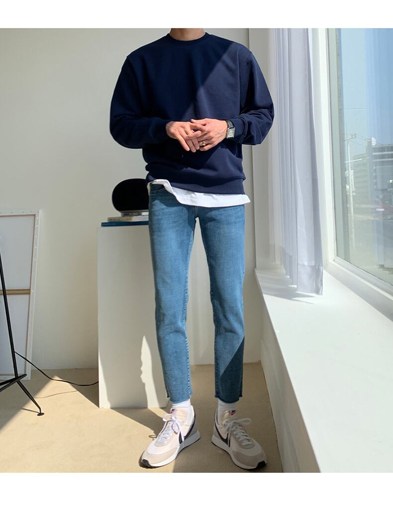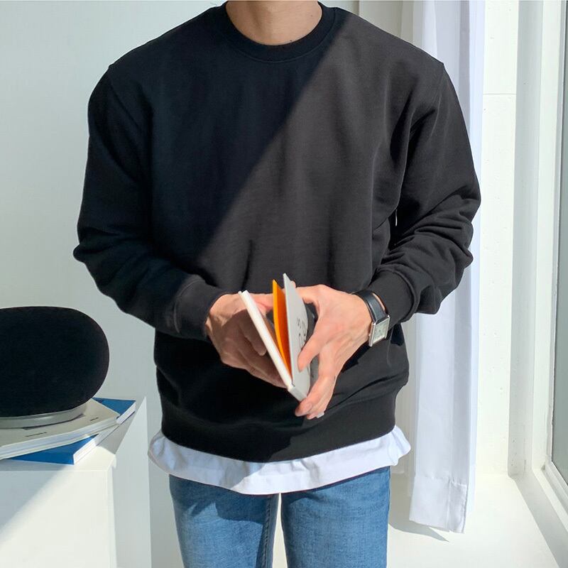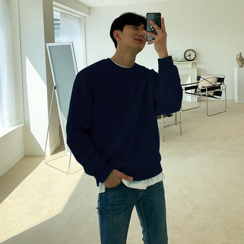 ソリッドカラーのラウンドネックセーターメンズタイドブランドは、トレンドの香港スタイルのオールマッチカジュアル長袖トップコートタイドのルーズバージョンです ロング Oネック BLUU3003348105