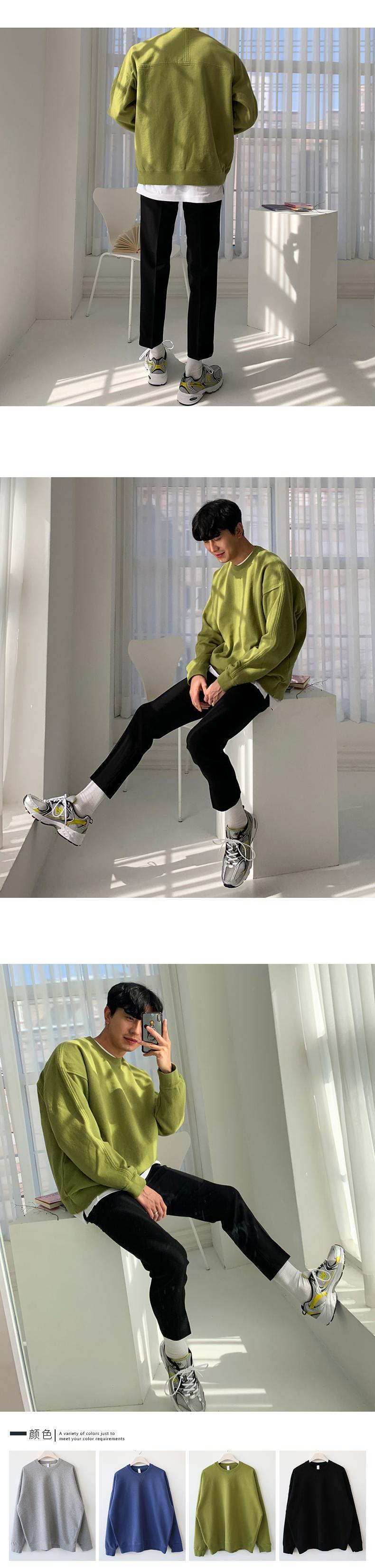 2022年春新作オーバーサイズセーターメンズトレンディインルーズ無地Tシャツバージョントレンドカジュアルジャケット スプリング 春物 ソリッドカラー BLUU26189289423