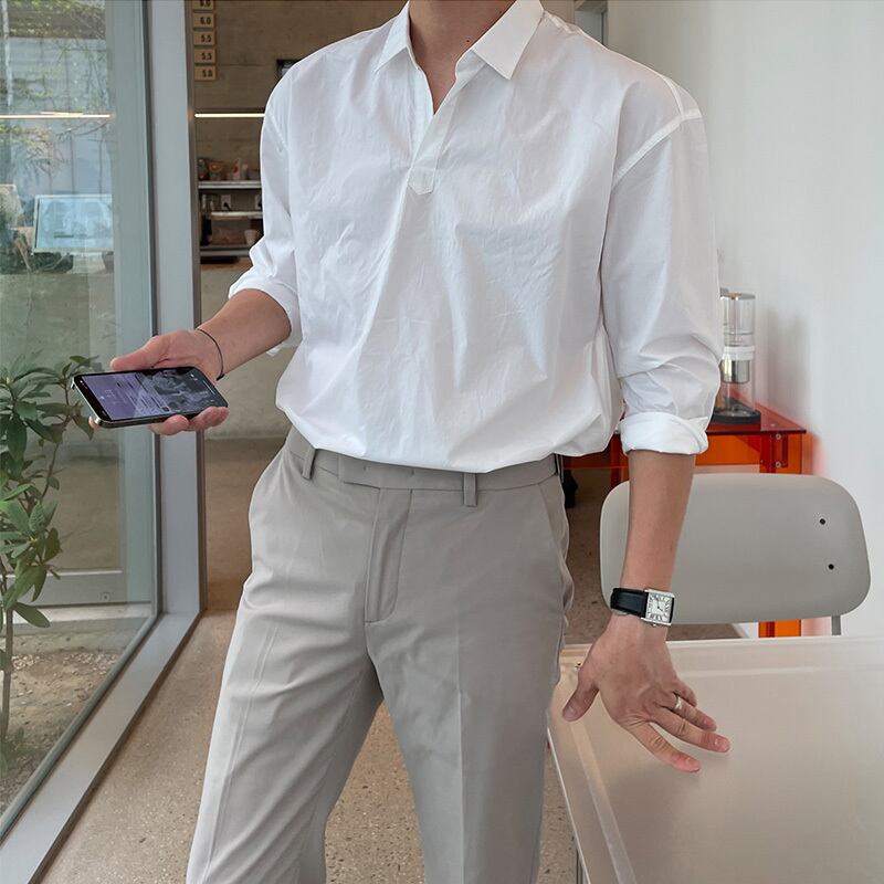 シャツメンズトレンドインハイエンドカジュアルルーズソリッドカラーアイアンフリーシャツバージョン怠惰なファッションオールマッチ長袖 ロング BLUU31008554053