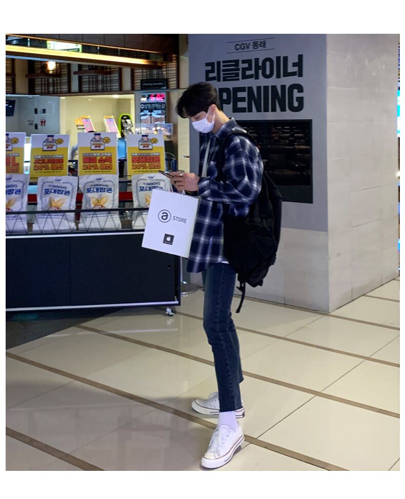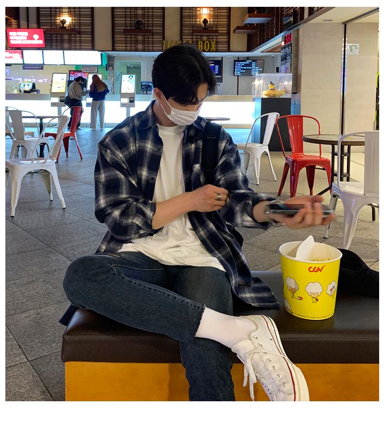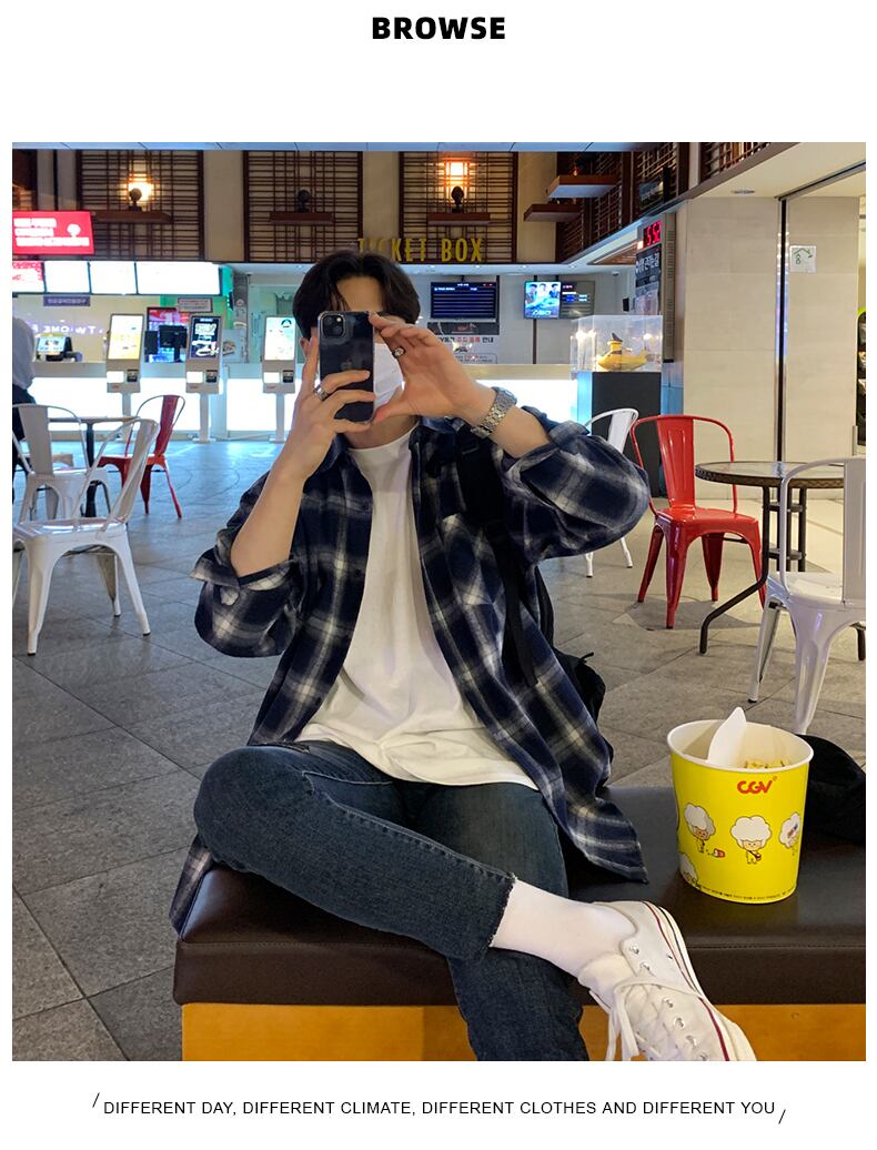チェック柄シャツメンズニッチデザイントレンドインカジュアルルーズオールマッチシャツバージョンハンサムファッション長袖 ロング BLUU44065608363