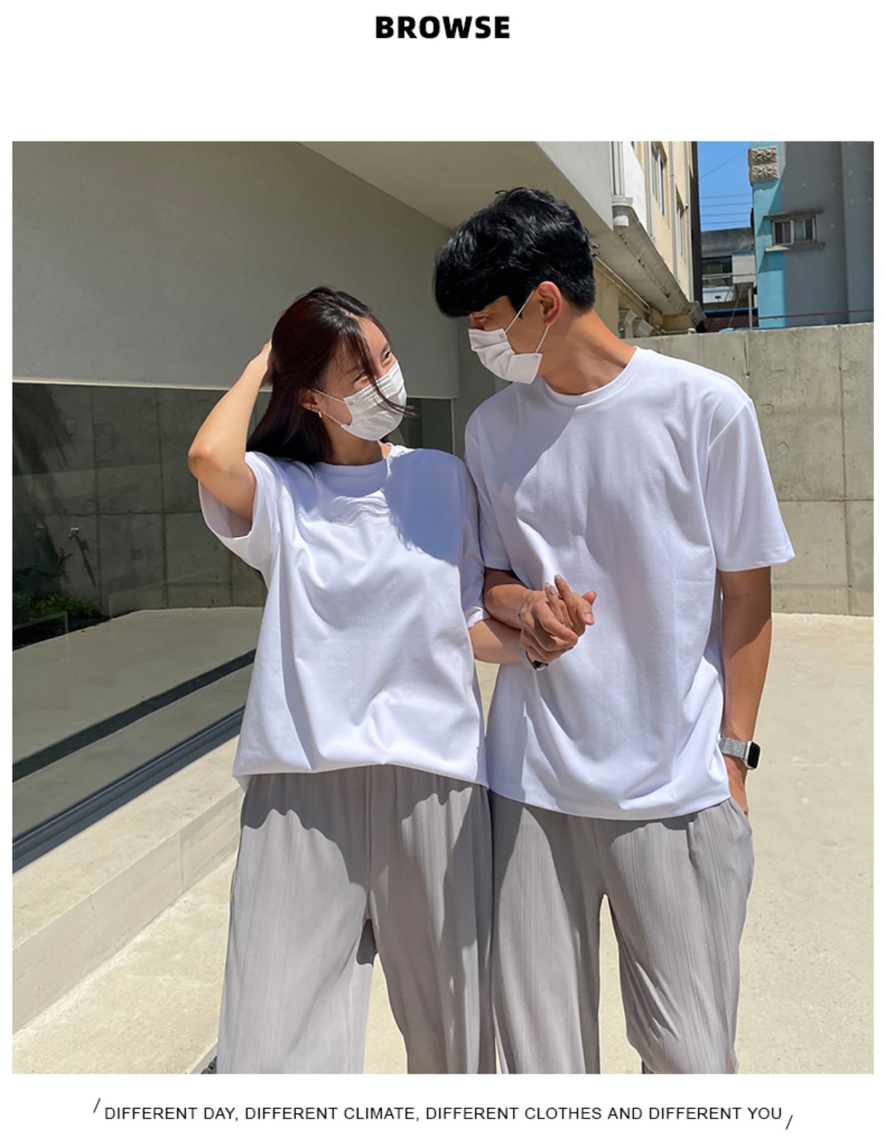 サマーラウンドネック半袖メンズルーズバージョントレンドオールマッチカジュアル無地コットンTシャツハーフスリーブカジュアルトップ 夏物 Oネック ソリッドカラー BLUU67645004698