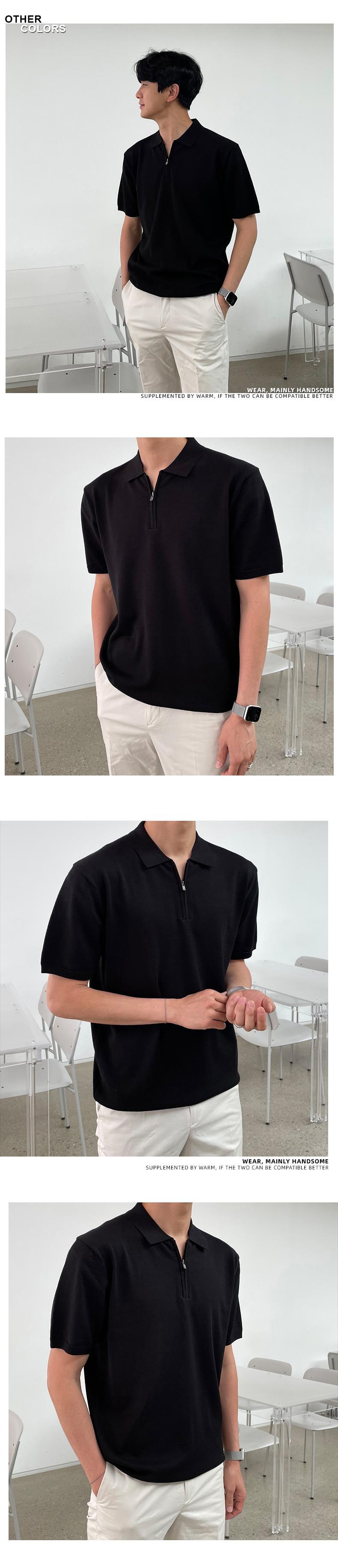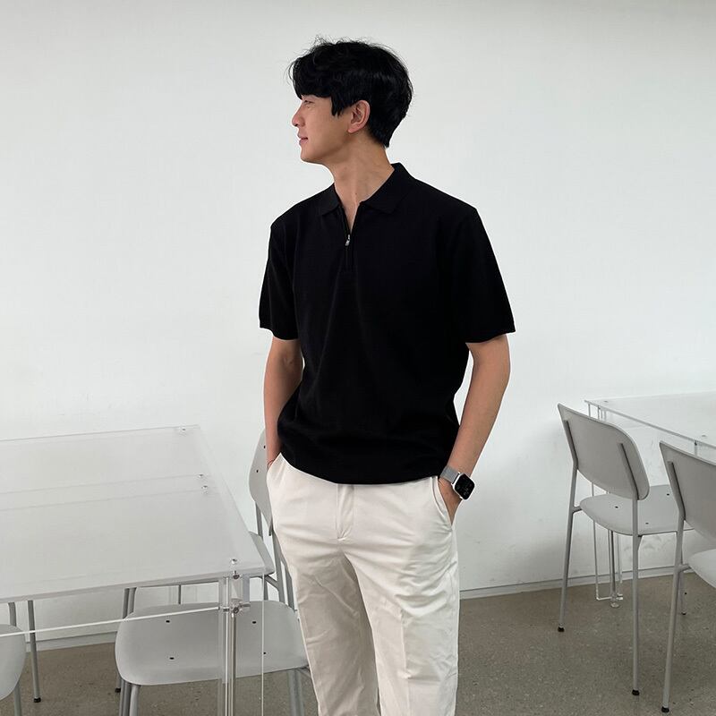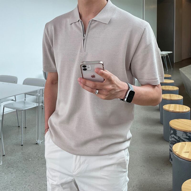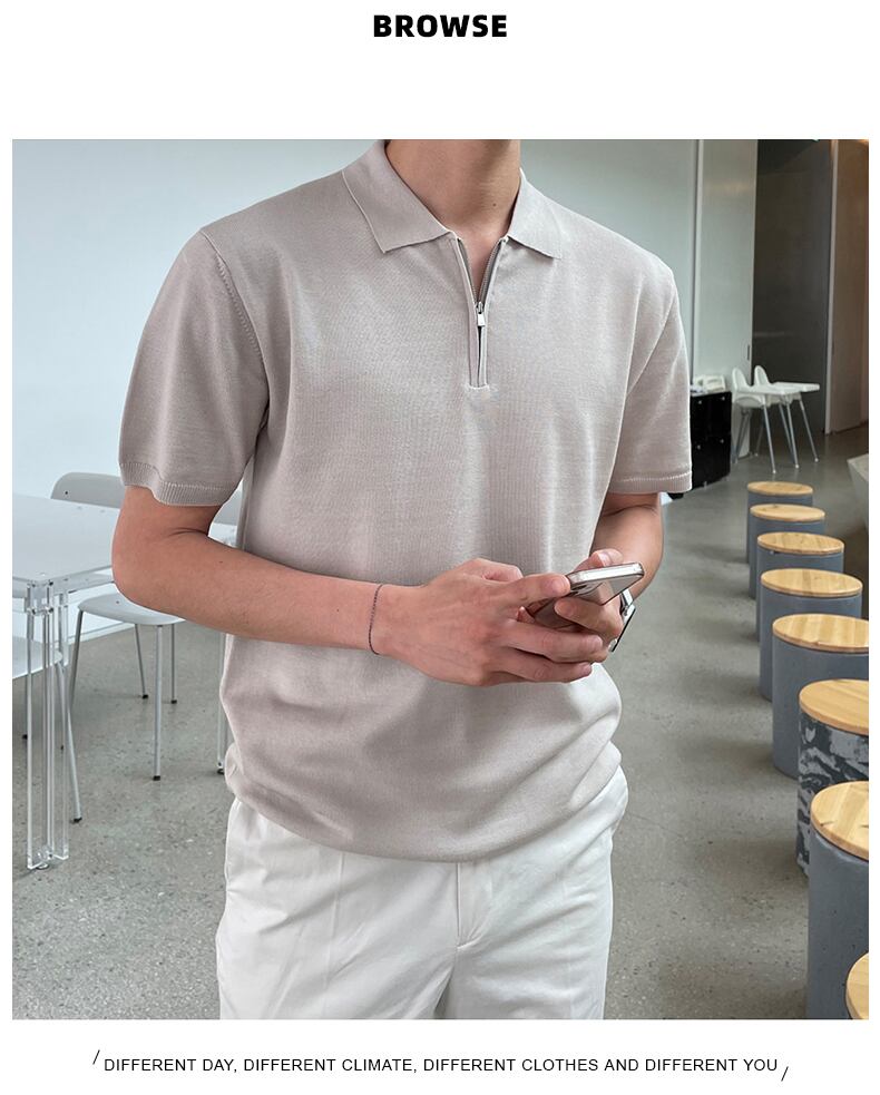夏のジッパーポロシャツ半袖メンズタイドブランドインルーズ香港スタイルオールマッチ無地ニットカジュアルトップス サマー 夏物 ソリッドカラー BLUU72641942653