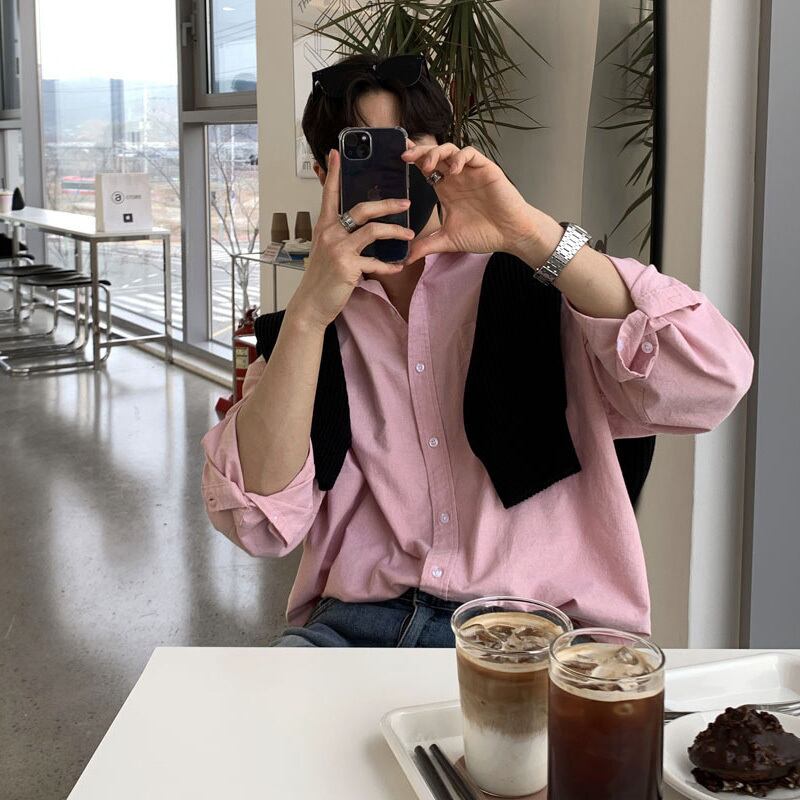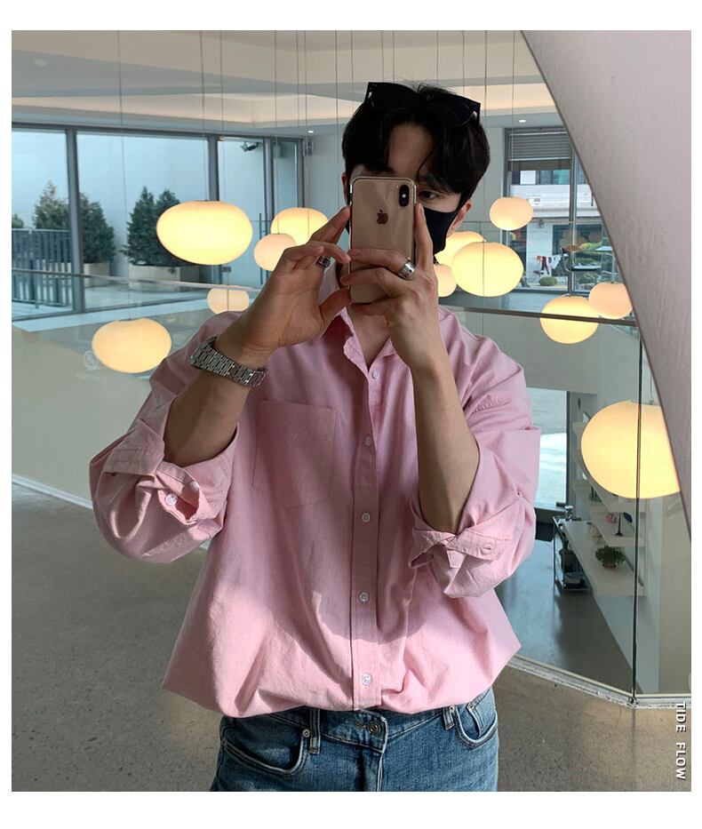 2022年夏の薄手のハイエンド長袖シャツメンズトレンディなブランドルーズ無地シンプルカジュアルシャツコートオールマッチ ロング サマー 夏物 ソリッドカラー BLUU13809576642