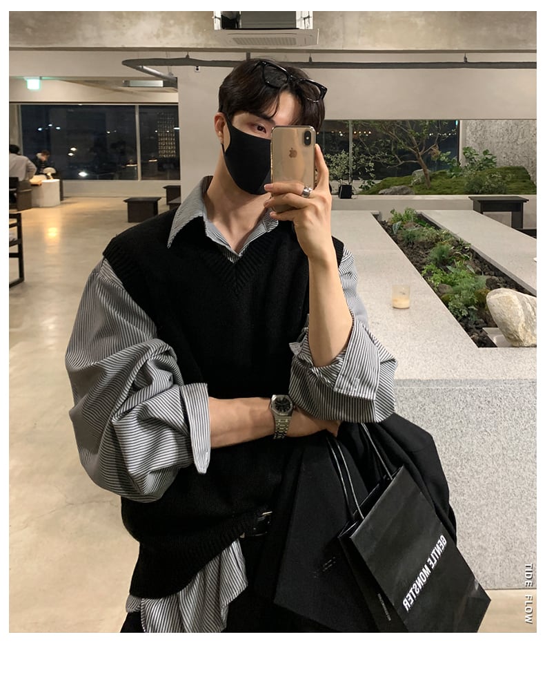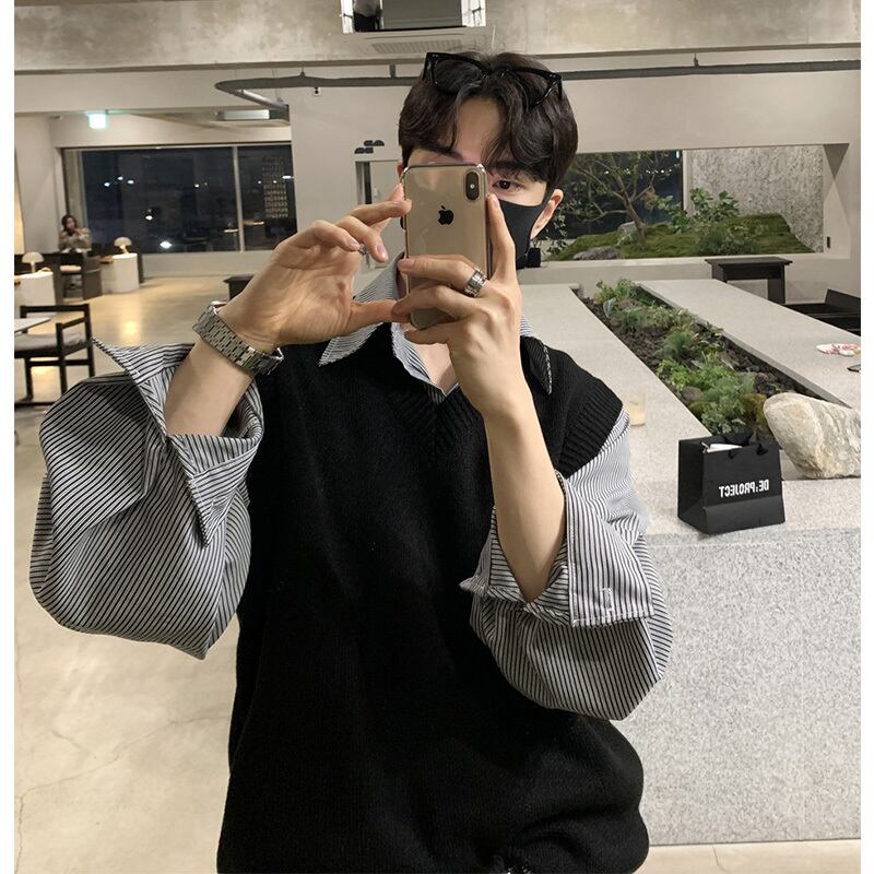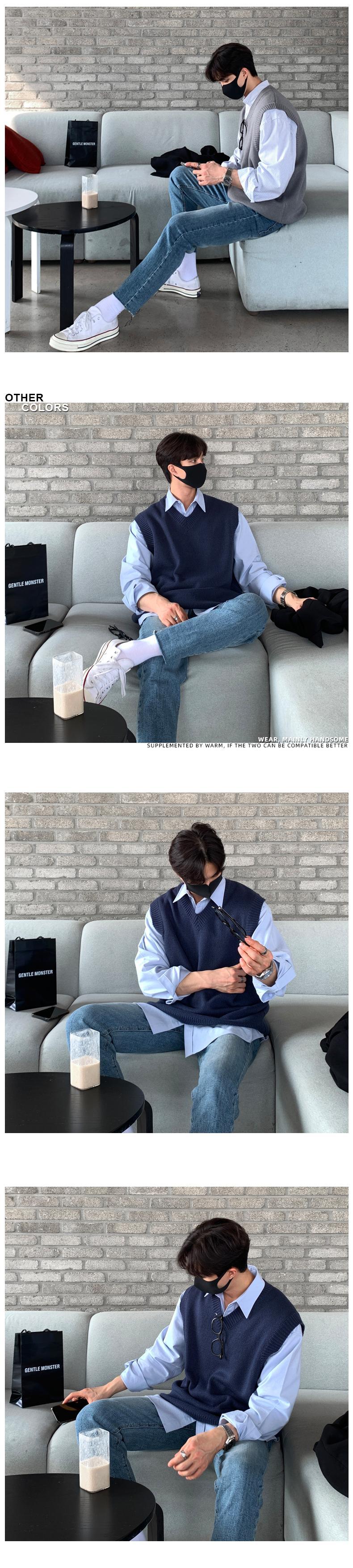 カジュアルな怠惰なファッションのシンプルなルーズオールマッチニットセーターベストトレンドインのネットレッドベストメンズ春と秋バージョン スプリング 春物 オータム 秋物 BLUU17323708221