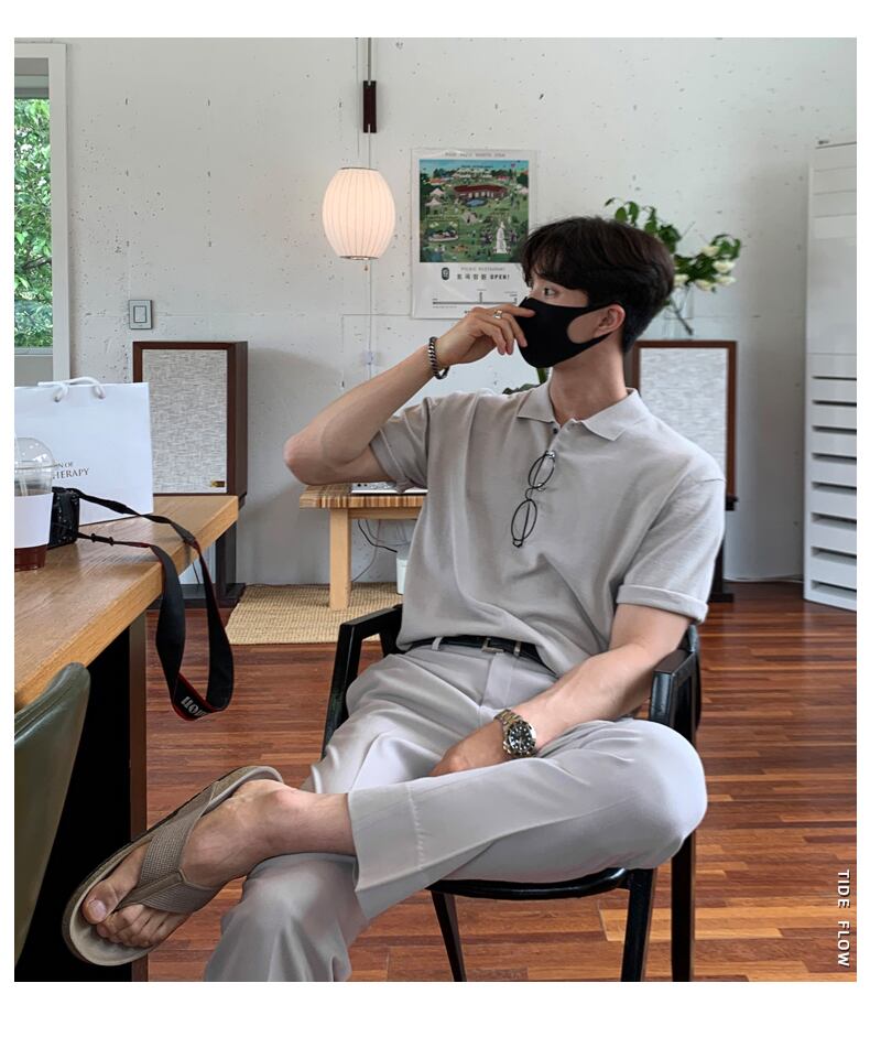 トレンドファッション無地ルーズオールマッチTシャツサマースーパーインスラペルトップのポロシャツ半袖メンズバージョン 夏物 ソリッドカラー BLUU89675929654