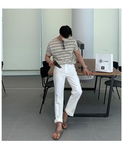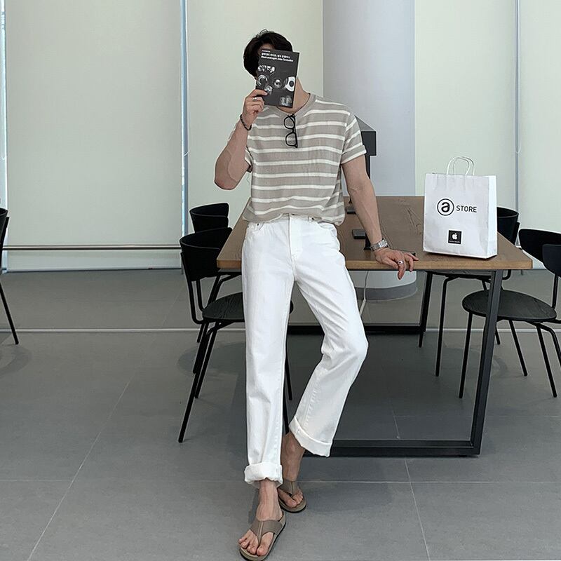 ジーンズタイドブランドメンズサマーカジュアルルーズワイドレッグパンツバージョンインレトロワイルドドレープホワイトパンツ 夏物 BLUU38059137160