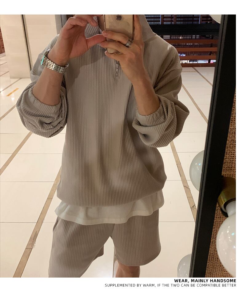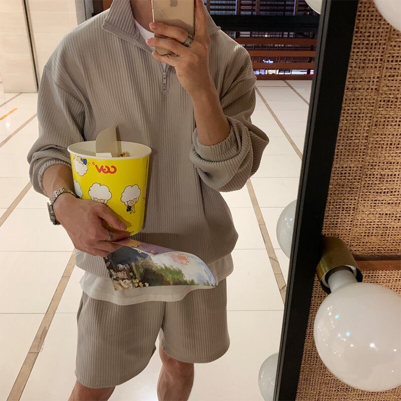 スーツメンズサマーファッションルーズオールマッチ5点パンツバージョントレンドインカジュアルハーフジッパートップ 夏物 BLUU78834756039