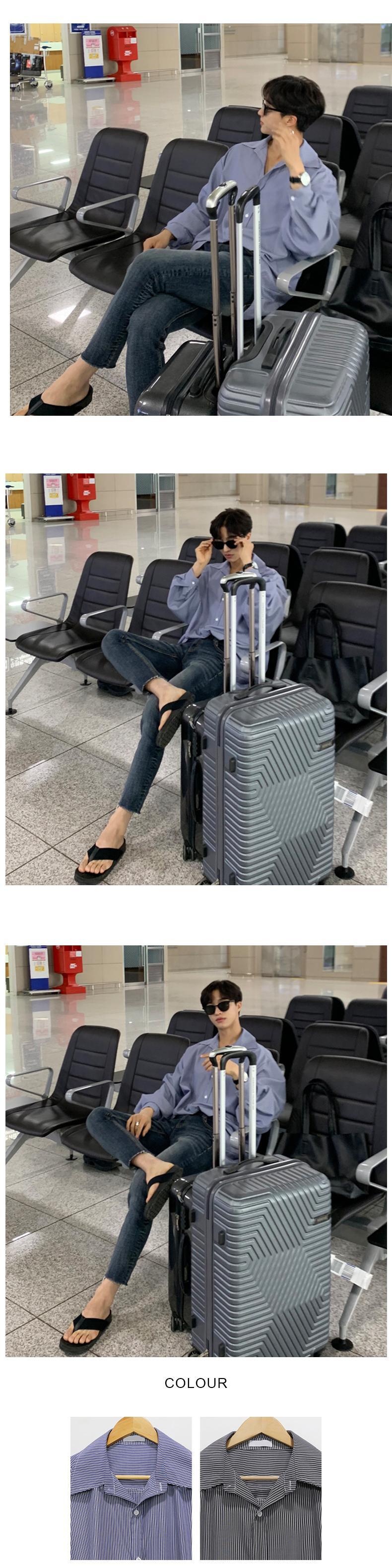 シャツメンズバージョンルーズオールマッチデザインストライプ長袖春秋トレンドインカジュアルファッションシャツ ロング スプリング 春物 オータム 秋物 BLUU93012285021
