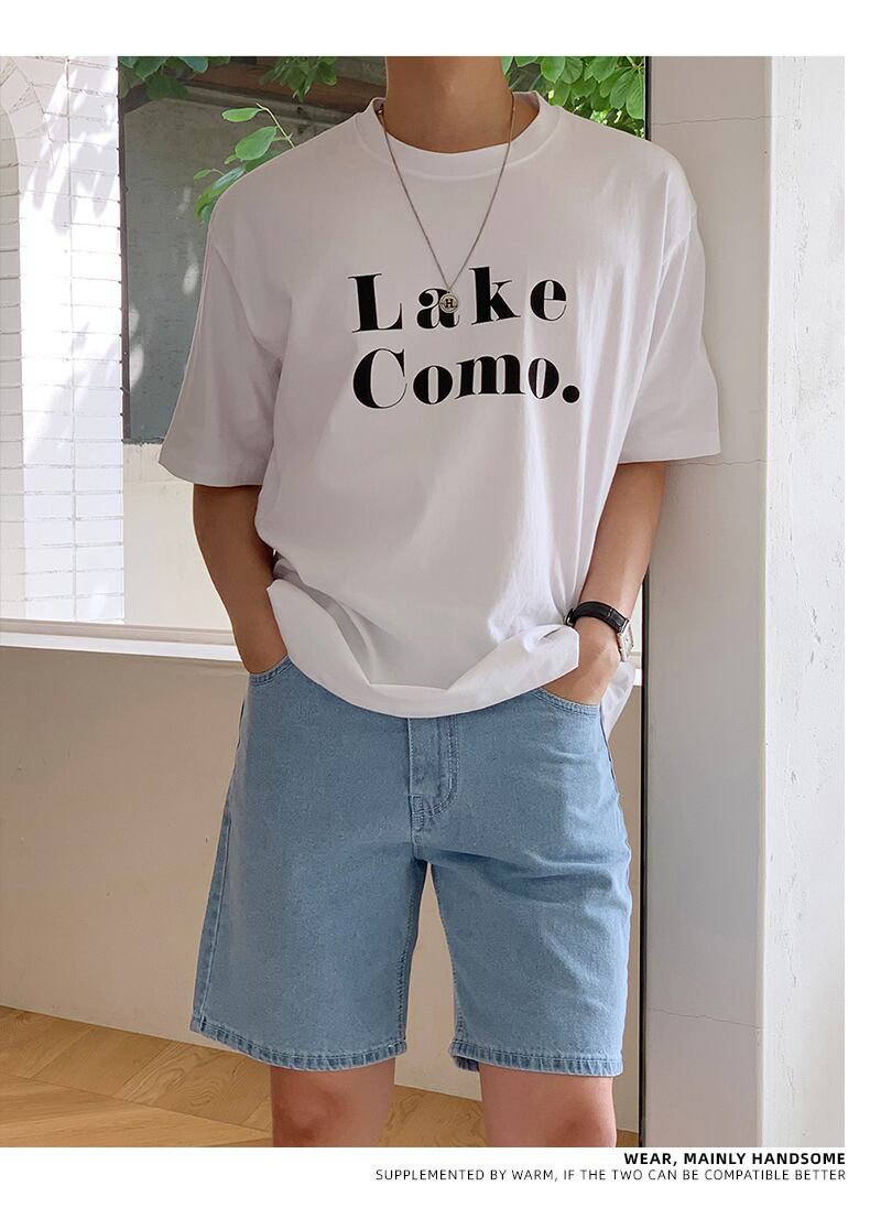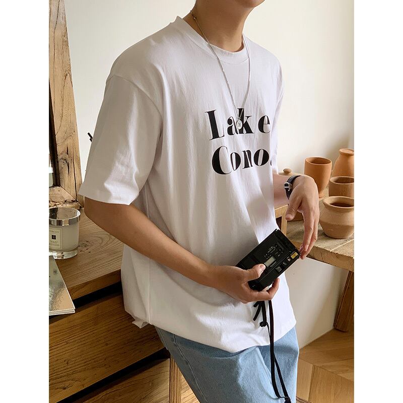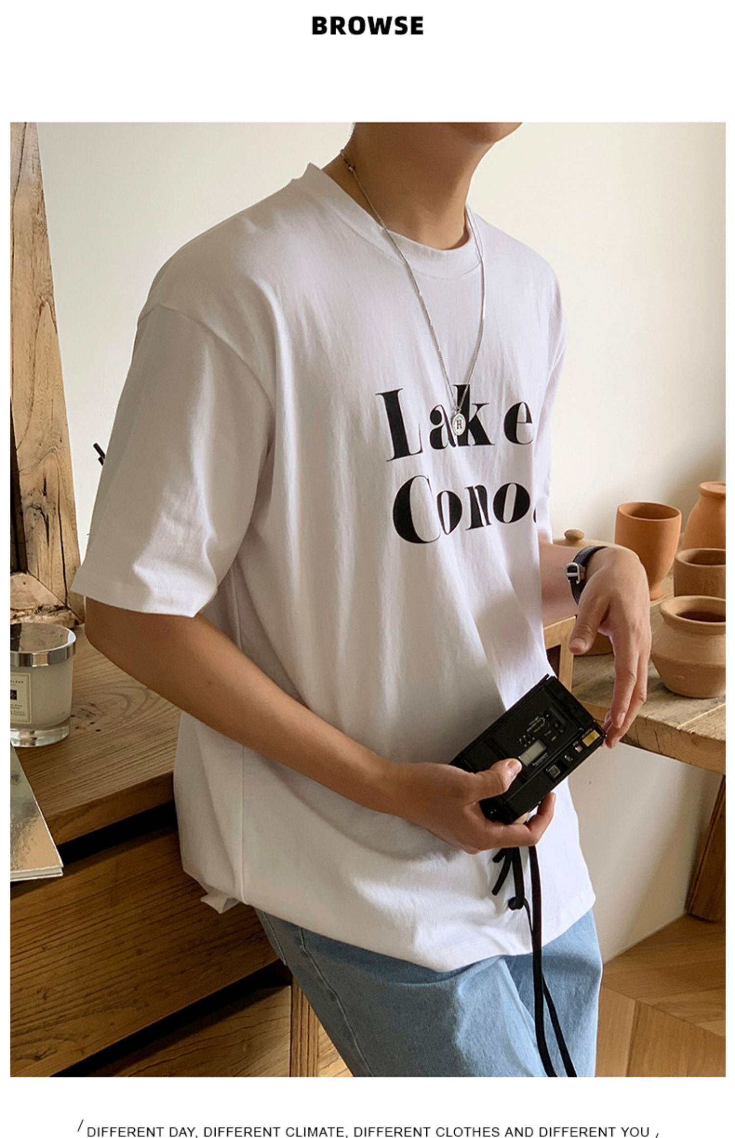 半袖メンズサマーユーストレンドファッションレタープリントハーフスリーブトップバージョンインカジュアルルーズオールマッチTシャツ 夏物 BLUU72754976844