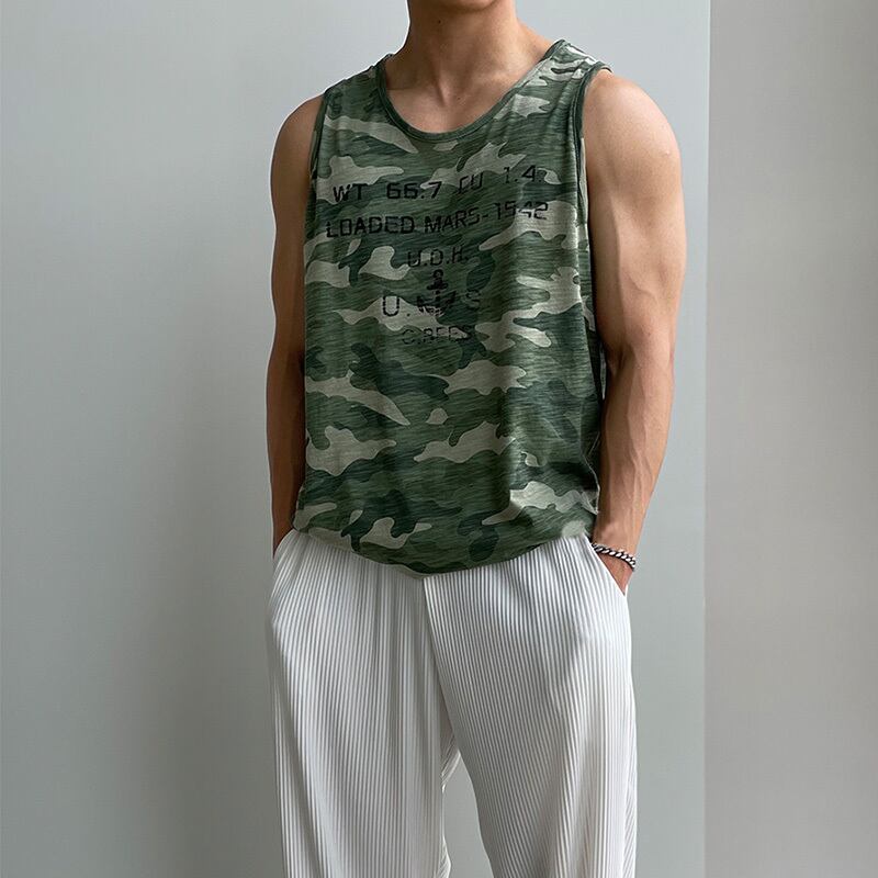 カモフラージュベスト男性ネットレッドトレンドインルーズベストトップサマーカジュアルファッションパーソナリティワイルドノースリーブTシャツ 夏物 BLUU40189760339