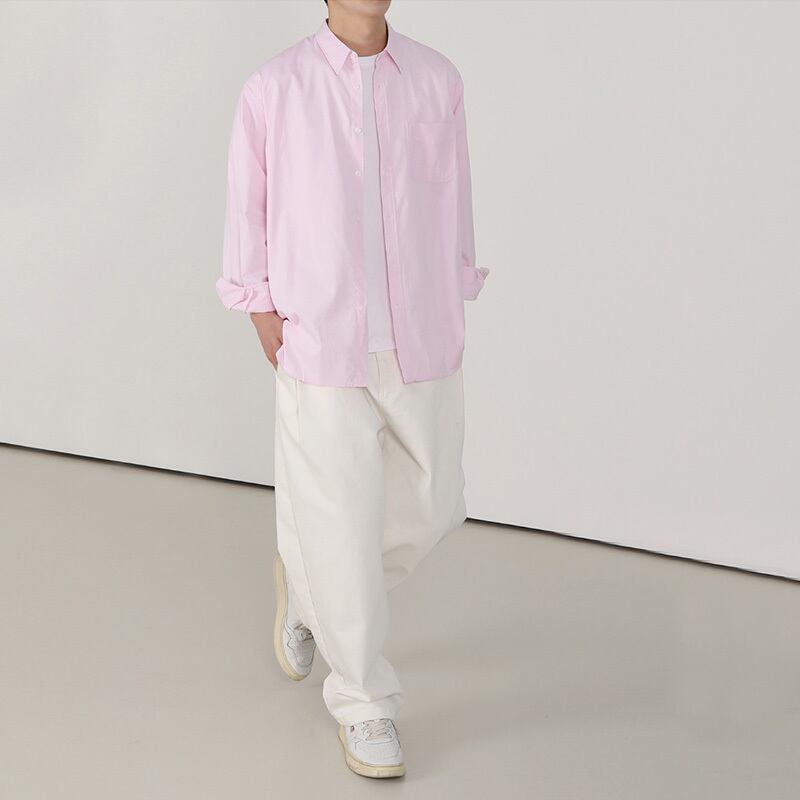 シャツメンズタイドブランドインパーソナリティハンサムカジュアルシャツバージョンユースファッションシンプルな無地多用途長袖 ロング ソリッドカラー BLUU42618347447