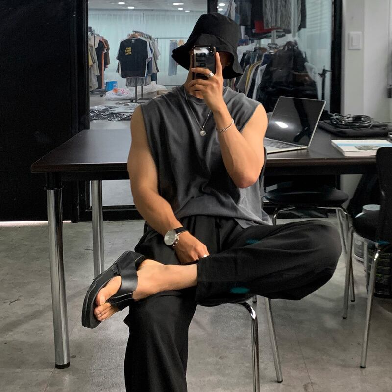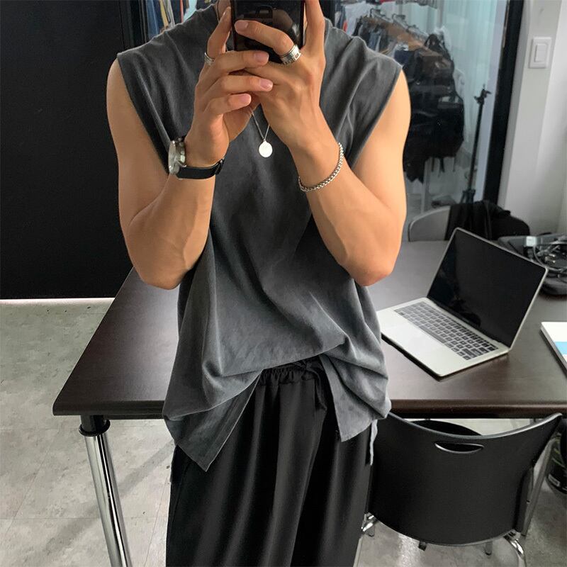 ネットレッドベストメンズサマートレンドインルーズベストベストバージョンファッションカジュアルオールマッチノースリーブトップ 夏物 BLUU59155100309