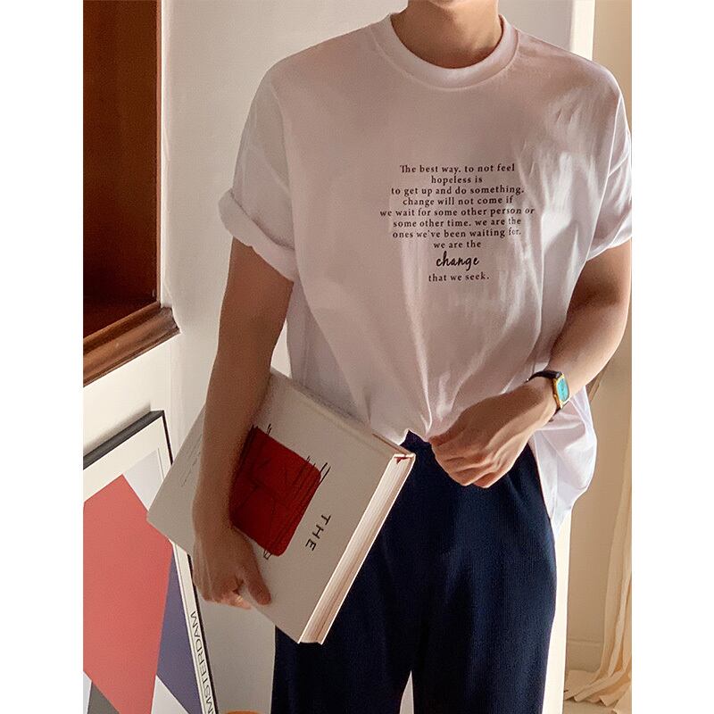 半袖メンズサマーファッションシンプルレタープリントラウンドネックTシャツバージョントレンドファッション純綿通気性トップ コットン 夏物 Oネック ピュア BLUU25708874190