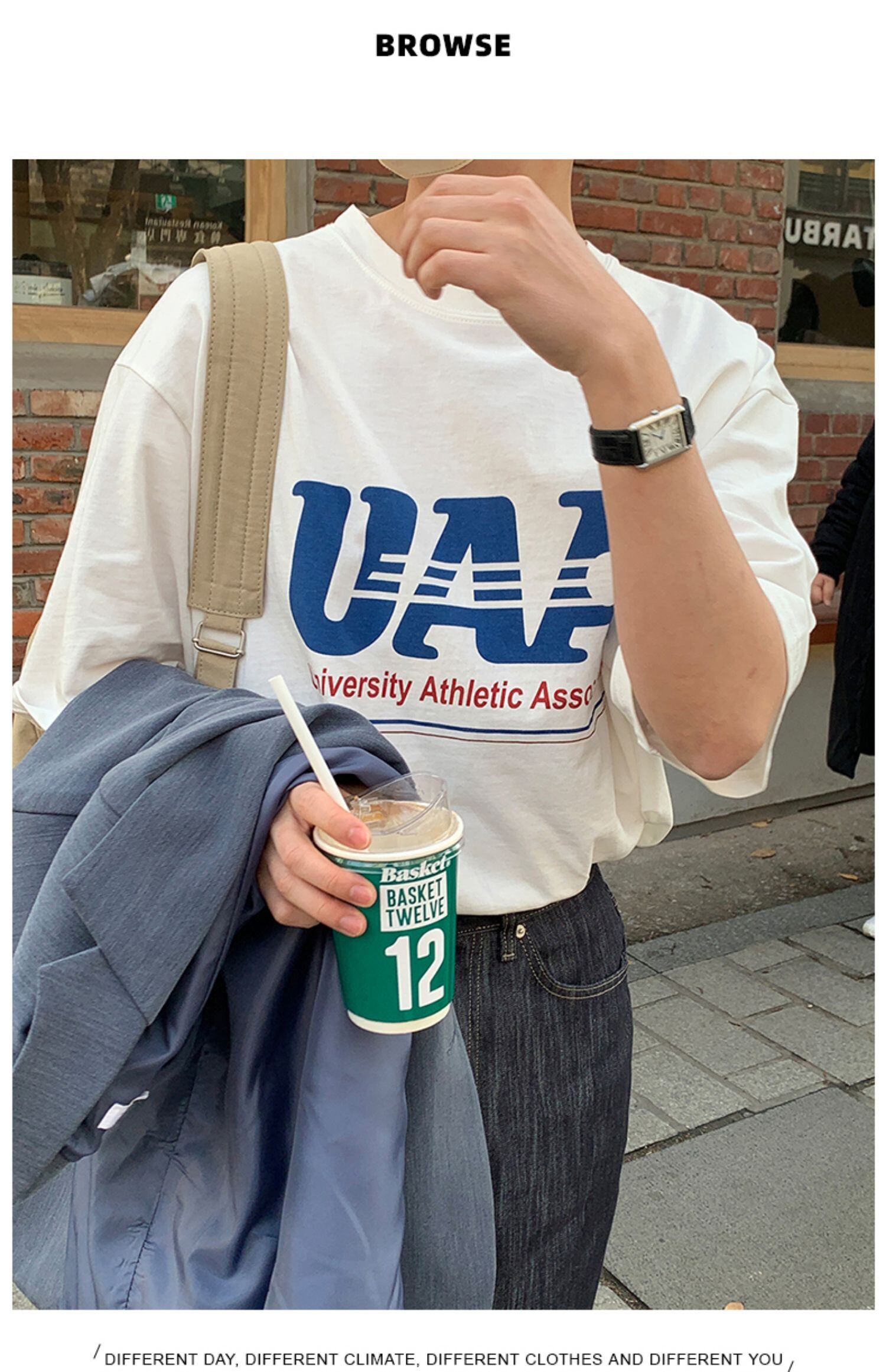 半袖Tシャツメンズサマールーズオールマッチコットン通気性ラウンドネックTシャツトレンドレジャーパーソナリティプリントボトミングシャツ 夏物 Oネック BLUU97114814785