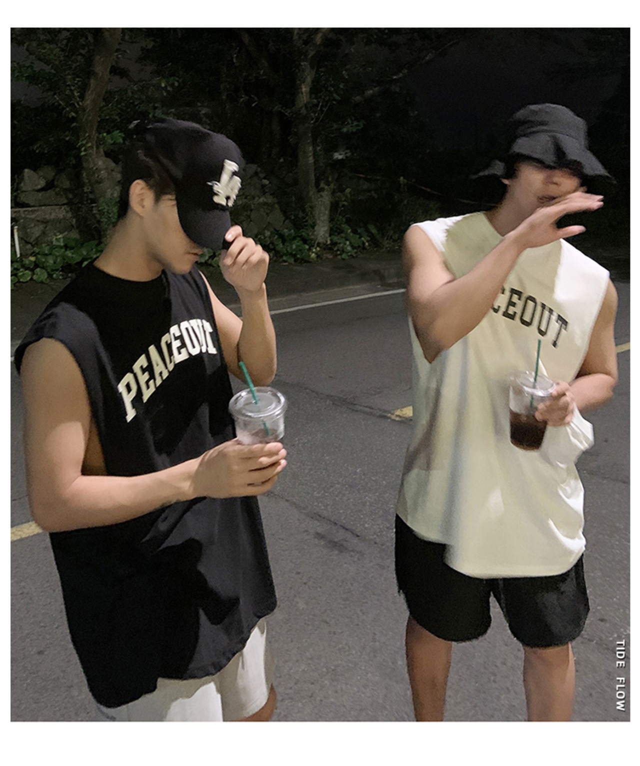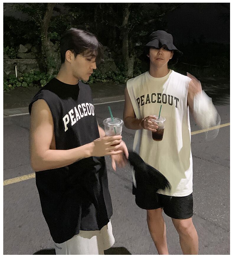 ベストメンズサマースタイルニッチデザインセンスプリントカジュアル汗吸収ノースリーブTシャツバージョントレンドファッショントップ 夏物 BLUU2762012175