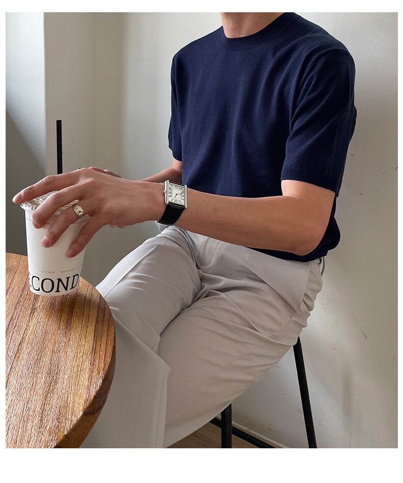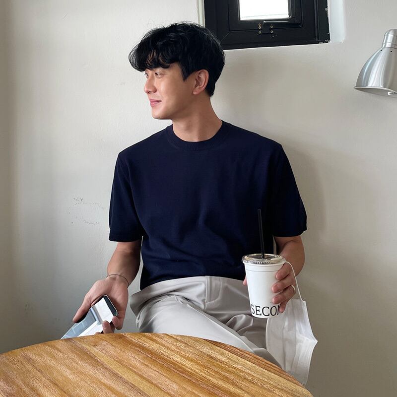 半袖メンズサマー怠惰なインファッション薄手のニットTシャツユーストレンドカジュアルオールマッチラウンドネックハーフスリーブトップ 夏物 Oネック BLUU59462271877