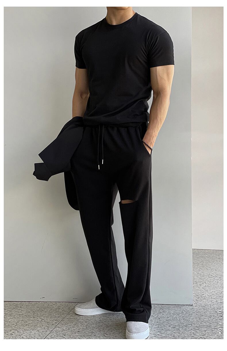 タイドブランドの半袖メンズサマーシンプル無地スリム通気性Tシャツバージョンは、ファッショナブルでハンサムなオールマッチラウンドネックトップです 夏物 Oネック ソリッドカラー BLUU62585424880