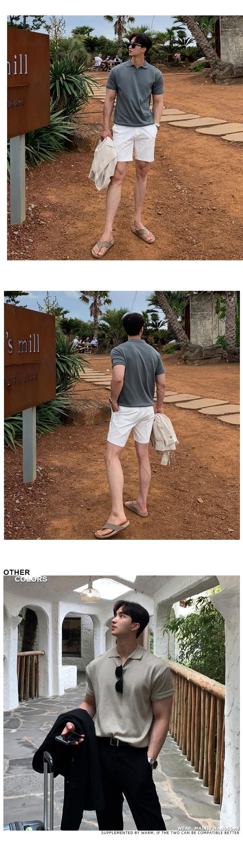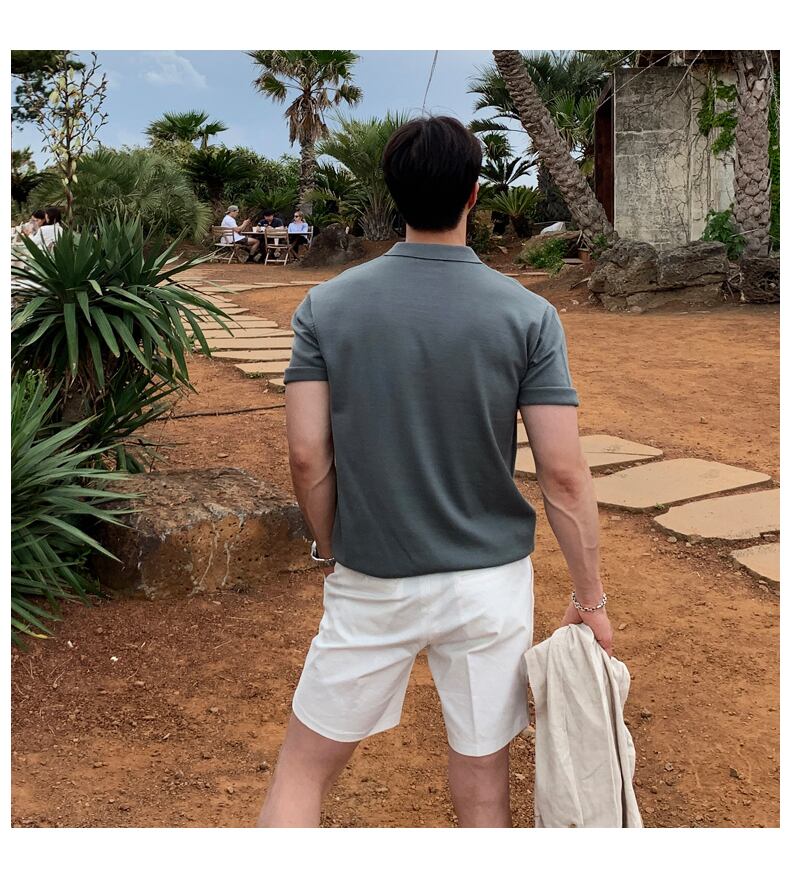 ニットポロシャツメンズ半袖タイドブランドメンズ香港スタイルインレトロ怠惰な風カジュアルインオールマッチラペルTシャツ BLUU50987650793